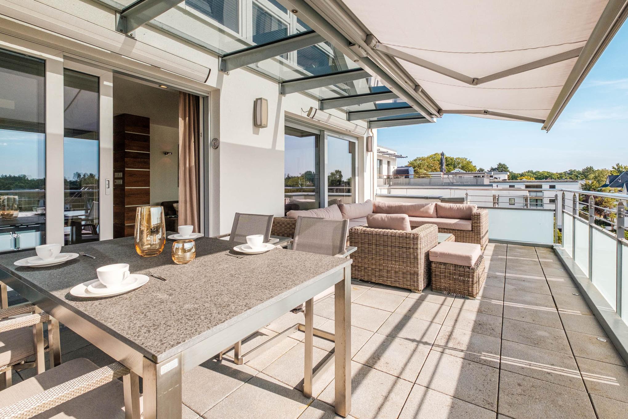 Die 28qm große Dachterrasse mit Markise in Süd-Westlage rundet dieses fantastische Urlaubsdomizil ab.