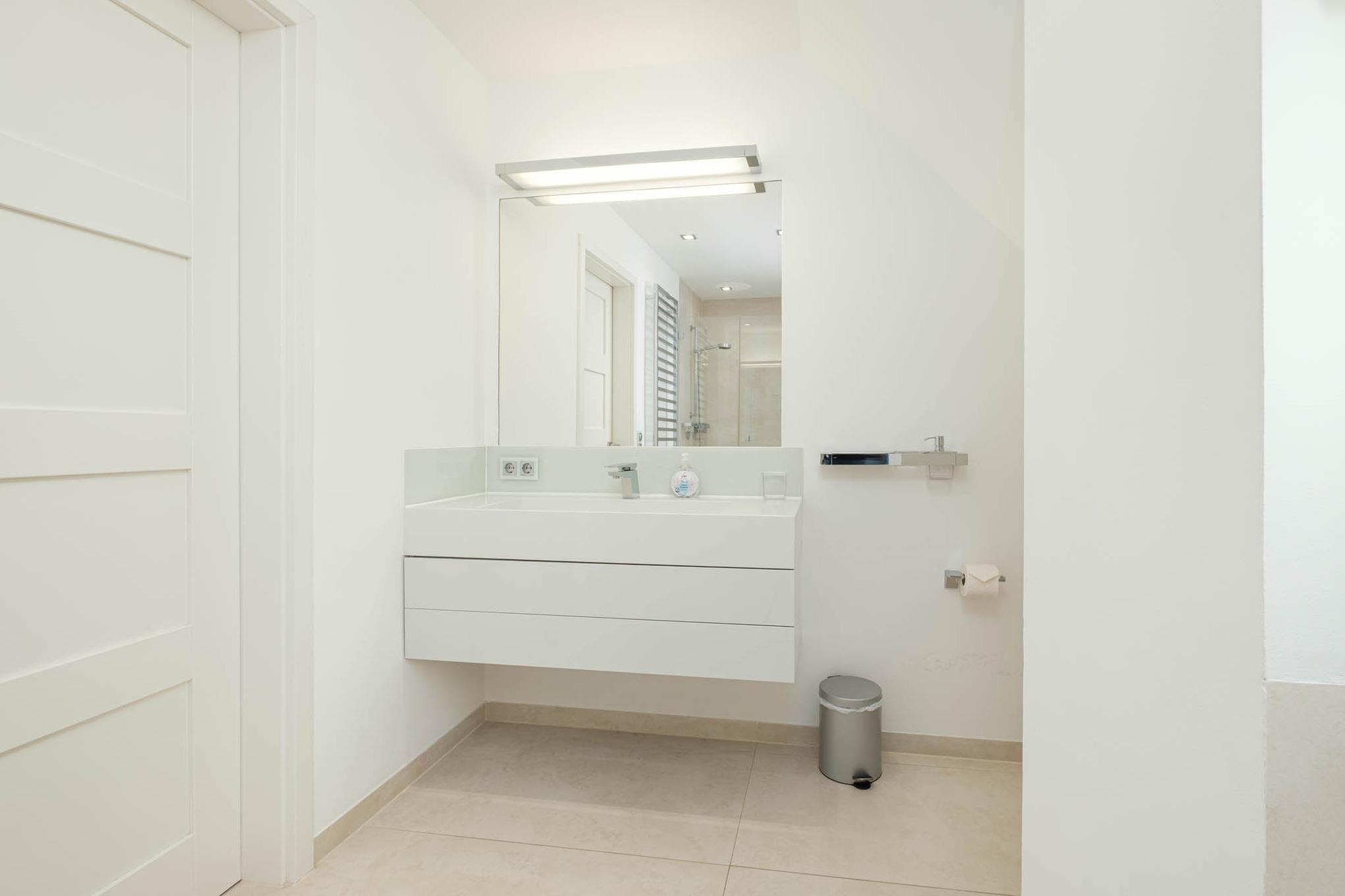 Das separate Schlafzimmer mit Doppelbett und 2. Flatscreen-TV befindet sich auf der 2. Ebene der Timmnendorfer Strand Ferienwohnung (über eine Treppe erreichbar), das 2. Schlafzimmer mit 2 Einzelbetten und einem weiteren Flatscreen-TV liegt auf der unteren Ebene. Um Ihnen einen erholsamen Schlaf zu garantieren, lassen sich die Schlafräume der Ferienwohnung verdunkeln. Das großzügige Badezimmer ist mit einer Badewanne und einer Dusche ausgestattet und befindet sich ebenfalls auf der 2. Ebene.