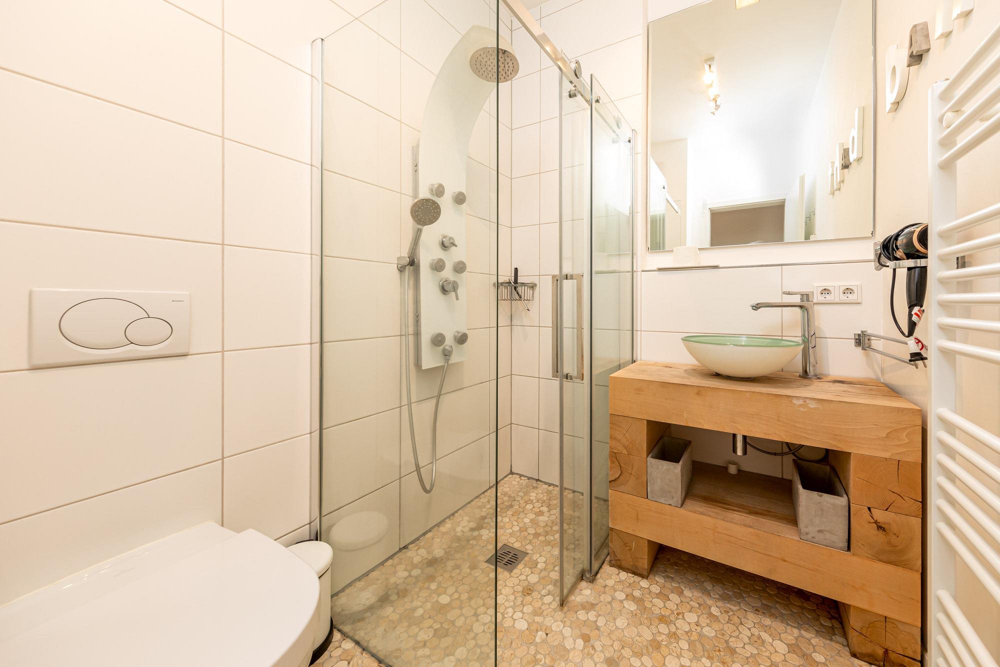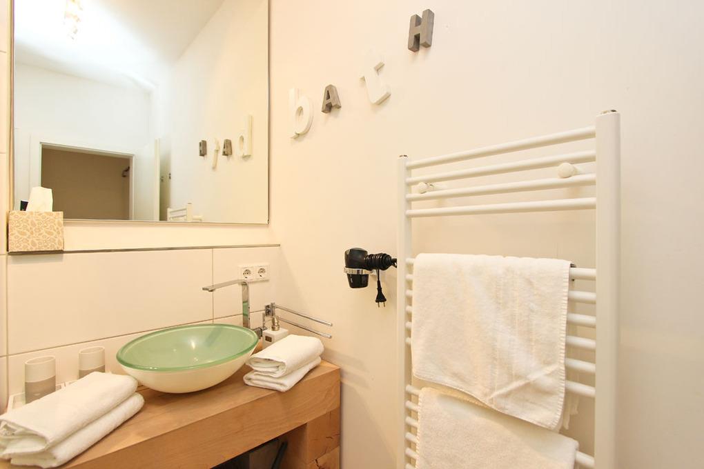 Das Appartement verfügt über einen ebenerdigen Zugang vom Parkplatz bis zur Wohnung. Außerdem erreichen Sie mindestens ein Schlafzimmer, den Wohnbereich und ein Badezimmer ebenerdig. Die Ferienwohnung verfügt zudem über eine bodengleiche Dusche oder über eine Dusche mit niedrigem Einstieg.