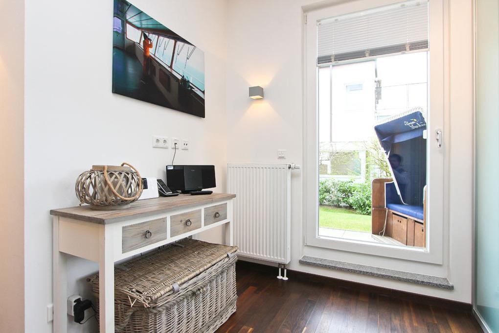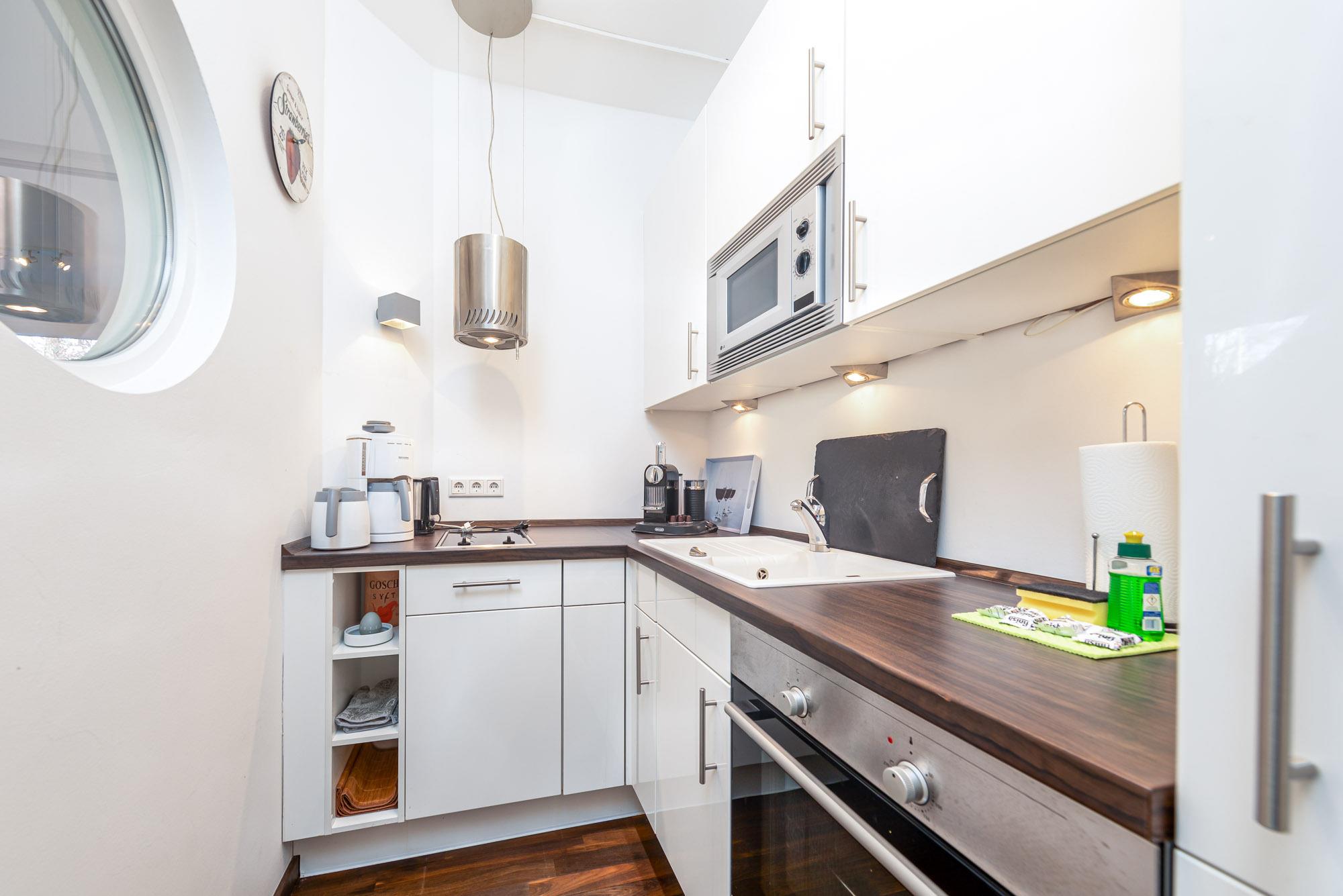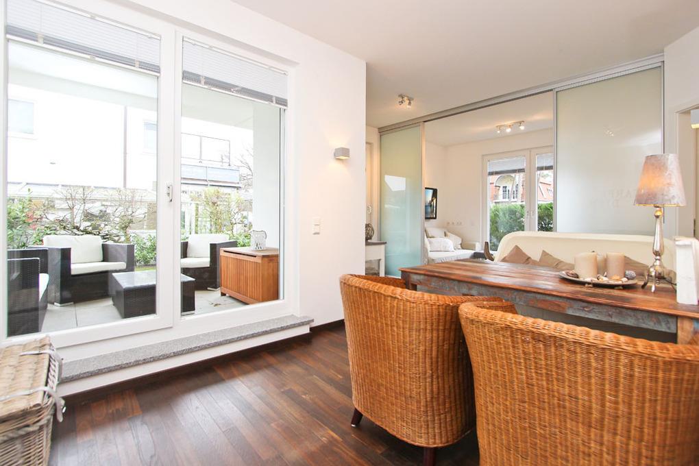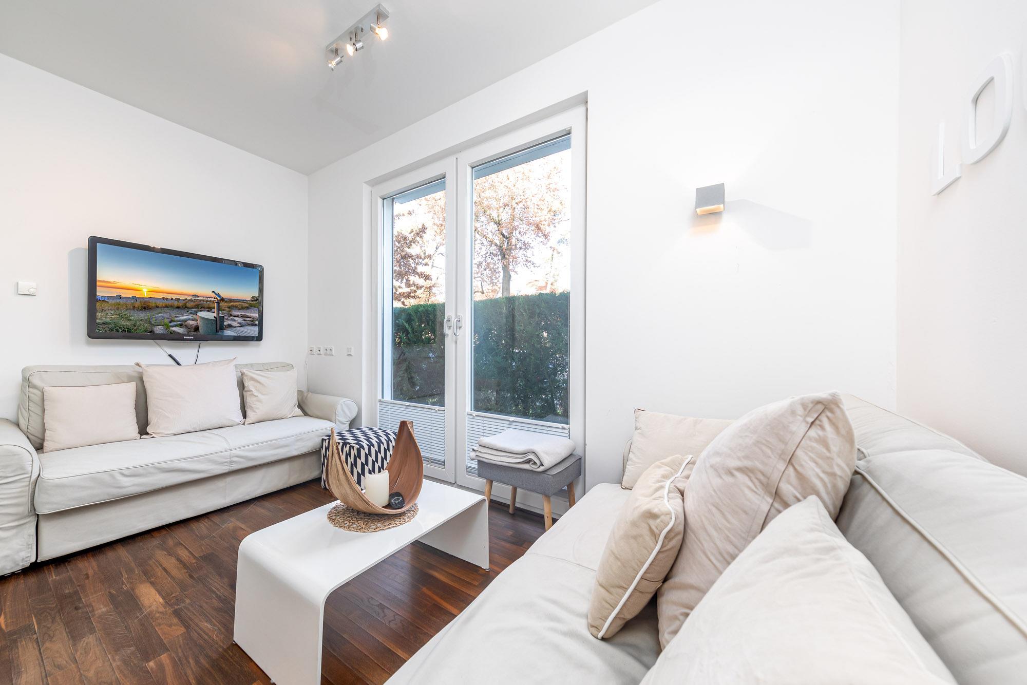 Die moderne 2-Zimmer-Ferienwohnung Beachside im Haus Timmare ist für maximal 4 Personen ausgestattet und befindet sich im Erdgeschoss mit Terrasse und einem angrenzenden Gartenanteil. Das Wohnzimmer verfügt über einen geschmackvollen Couchbereich mit Ausziehcouch, Flatscreen-TV und den geschmackvollen Essbereich. Die hochwertige Küche der Timmendorfer Strand Ferienwohnung ist mit den modernsten Geräten ausgestattet u.a. Backofen, Ceranfeld, Geschirrspüler und Mikrowelle.Darüber hinaus finden Sie eine Filter Kaffeemaschine und eine Nespresso Maschine vor