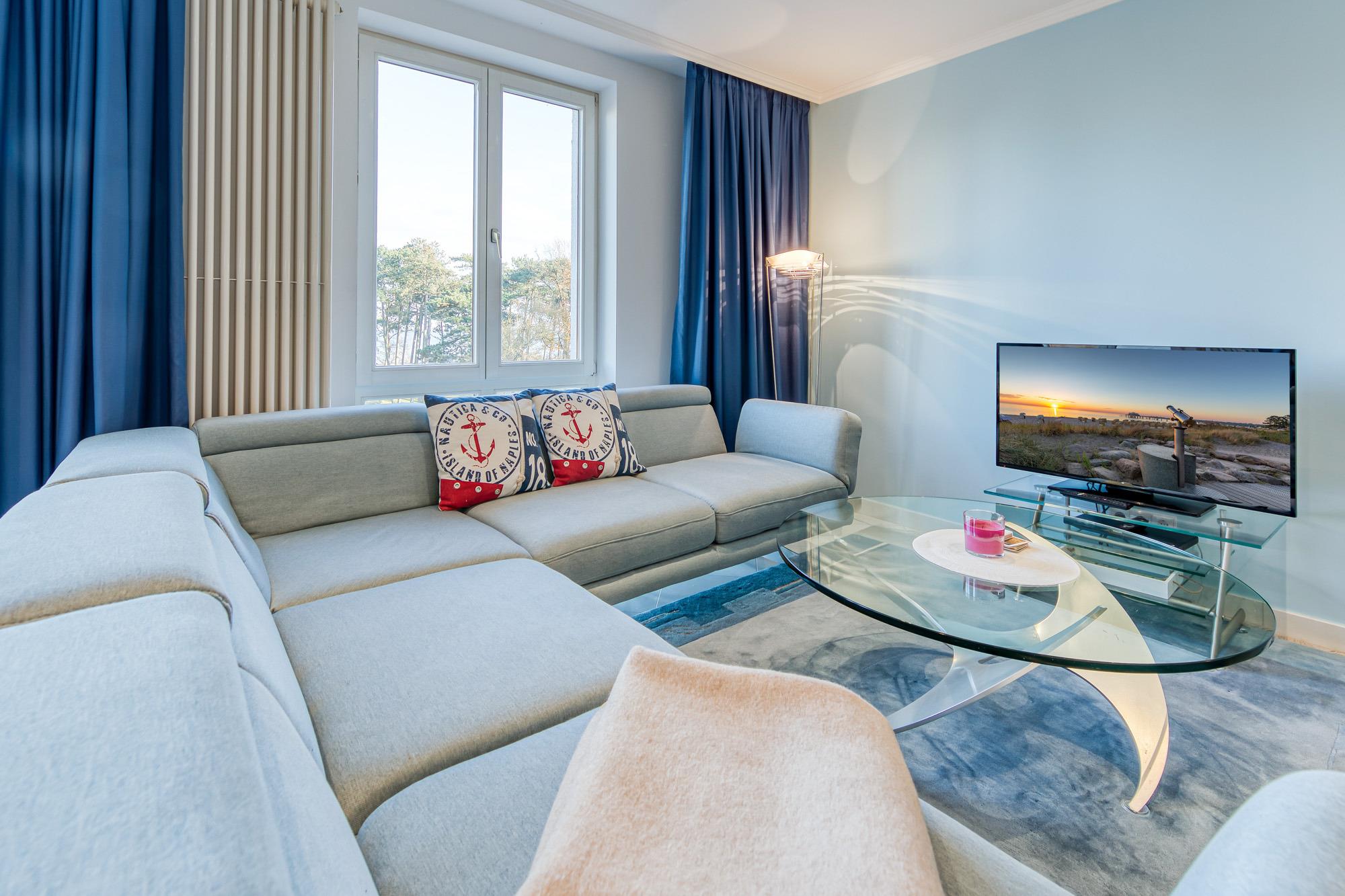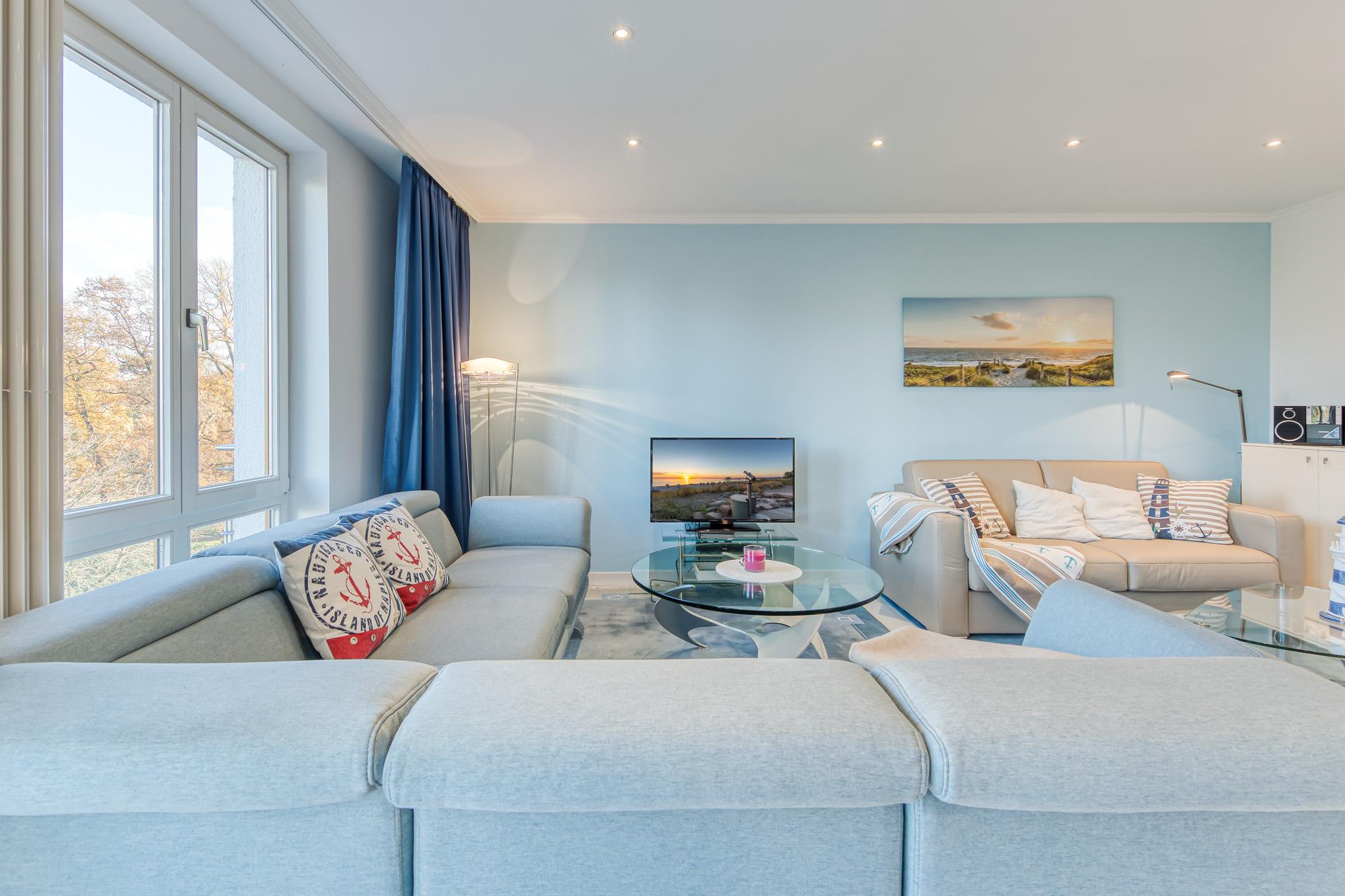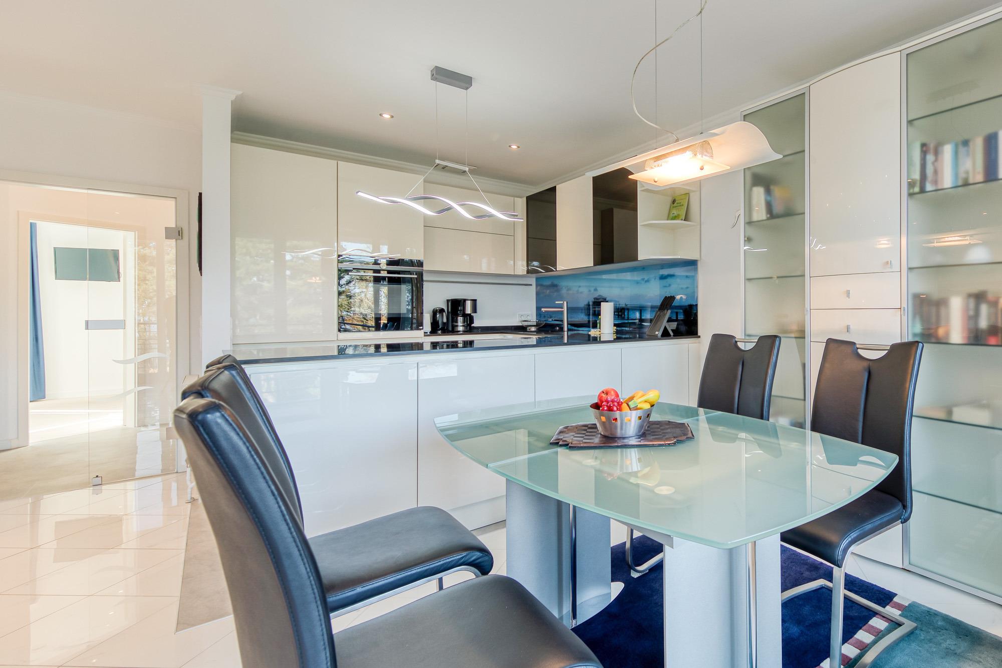 In der Timmendorfer Strand Ferienwohnung erwartet Sie ein großzügig geschnittenes 2-Zimmer-Appartement in der 3. Etage für bis zu 4 Personen. Das große Wohnzimmer verfügt über eine Leder-Couchgarnitur, eine Doppelbett-Schlafcouch, Flatscreen-TV, Stereoanlage, gemütliche Essecke, sowie eine separate Einbauküche, die mit Induktionskochfeld und Geschirrspüler eingerichtet ist. Zustätzlich steht Ihnen eine Senseo Kaffeemaschine zur Verfügung.