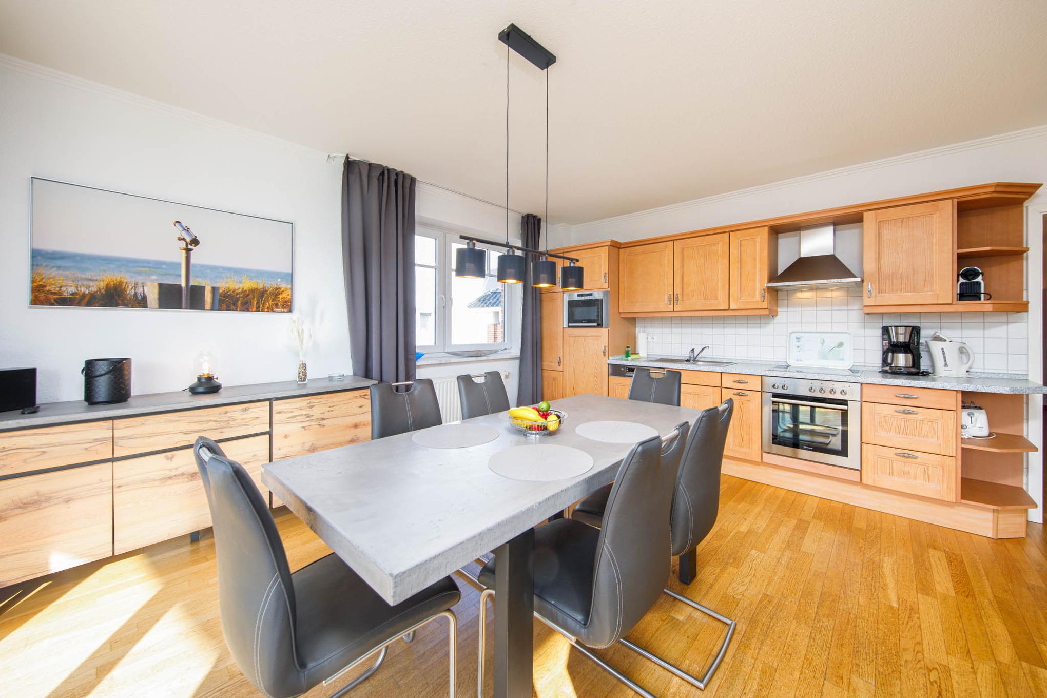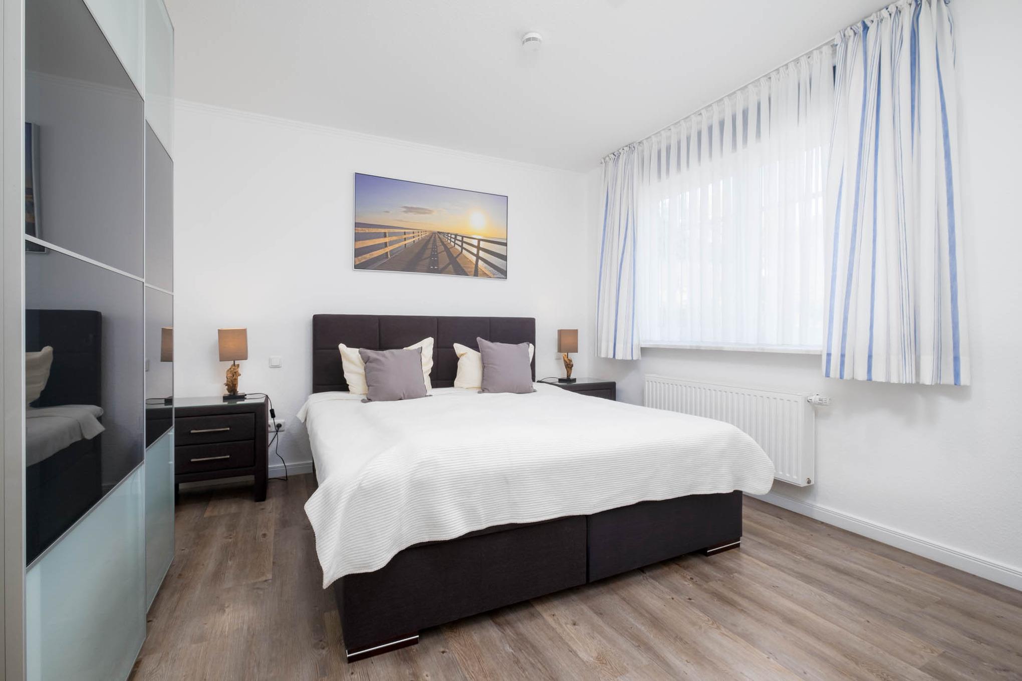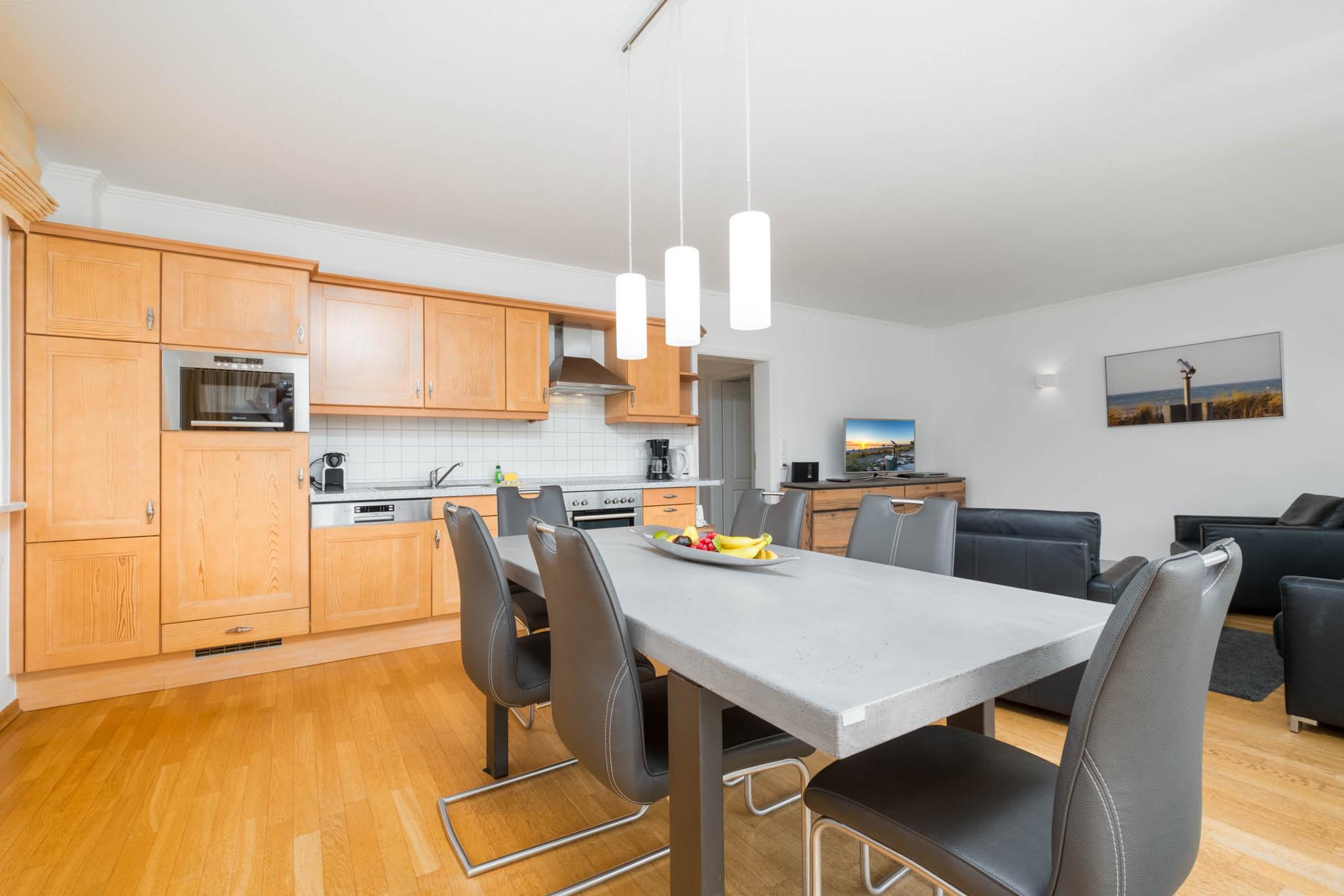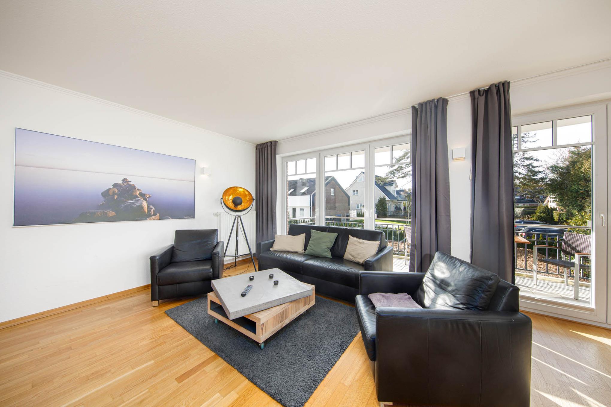 Beim Appartement Nr. 4 handelt es sich um ein schönes 3-Zimmer-Appartement im Erdgeschoss mit möbliertem Balkon in Süd-West-Ausrichtung und Parkettfußboden im Wohnbereich. Die Timmendorfer Strand Ferienwohnung erstreckt sich über eine Wohnfläche von 80qm und ist für 4 Personen geeignet. Sie verfügt über einen Wohnbereich mit Ledercouch, Flat Screen TV, Apple TV und Bose Sound Touch Anlage sowie einer gemütlichen Essecke. Die offene, angrenzende Pinienholz-Einbauküche verfügt über Ceranfeld, Backofen, Mikrowelle, Nespresso-Maschine und Geschirrspüler. Zudem sind alle weiteren, notwendigen Küchenutensilien vorhanden. Das Schlafzimmer I wurde mit einem komfortablen Boxspringbett (180x200cm) ausgestattet. Das Schlafzimmer II verfügt ebenfalls über ein Boxspringbett (180x200cm), darüber hinaus steht Ihnen in jedem Schlafzimmer ein zusätzlicher Flat Screen TV zur Verfügung. Ein Bad mit ebenerdiger Dusche und Bidet, sowie ein Gäste-WC sind in dieser gemütlichen Ferienwohnung Timmendorfer Strand vorhanden.