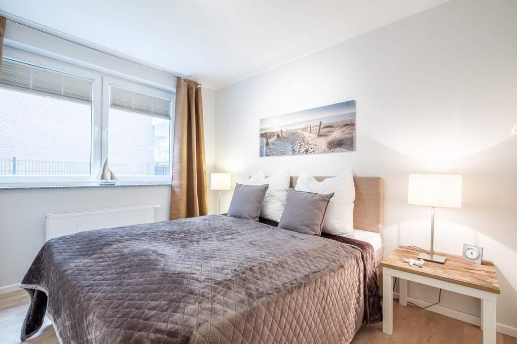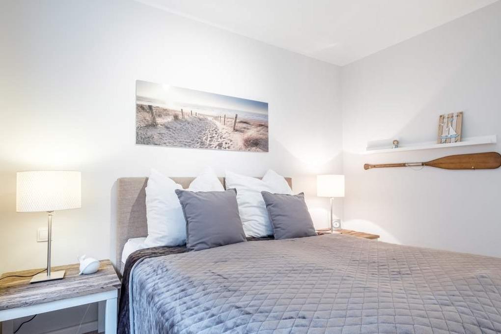 Das separate Schlafzimmer dieser Ferienwohnung Timmendorfer Strand ist mit einem Doppelbett (160x200cm) ausgestattet. Die möblierte Terrasse in Ost-Lage mit Blick Richtung Ostsee rundet dieses Timmendorfer Strand Urlaubsdomizil ab.