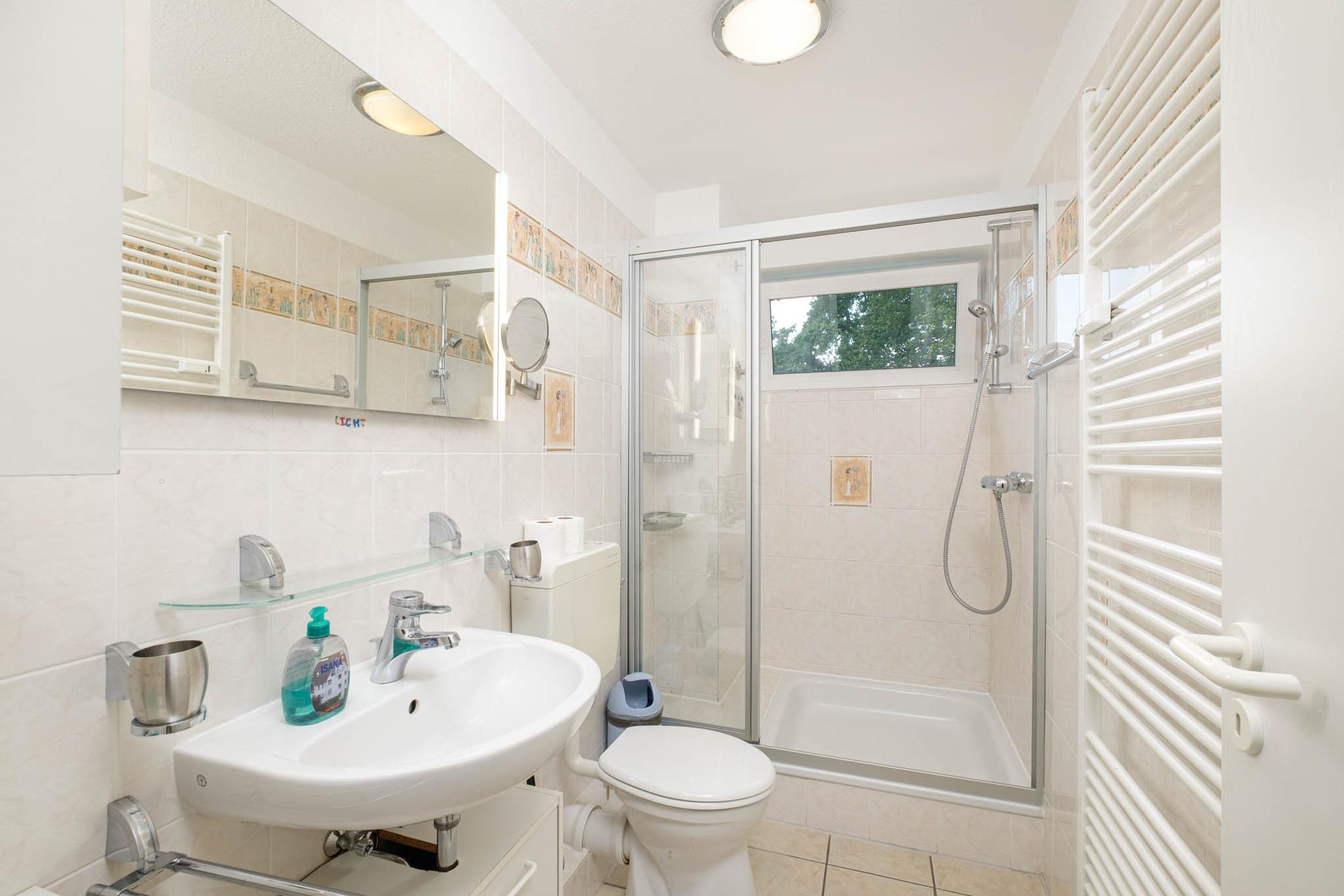 Den Gästen steht in der Saison vom 01.05. - 15.09. ein Strandkorb am Strand zur kostenfreien Nutzung zur Verfügung.Für Ihre Fahrräder gibt es einen Schuppen auf dem Gelände.(Eine Platzgarantie für Ihre Fährräder übernehmen wir nicht). Wir möchten Sie darauf hinweisen, dass sich in der Anlage kein Fahrstuhl befindet. Im gemeinschaftlichen Waschraum stehen Waschmaschine und Trockner (gegen Gebühr) zur Verfügung. Für Ihren Pkw gibt es einen eigenen Tiefgaragen-Stellplatz (Einfahrtshöhe ca. 1,90m). Haustiere und Raucher sind in dieser Wohnung nicht erlaubt.