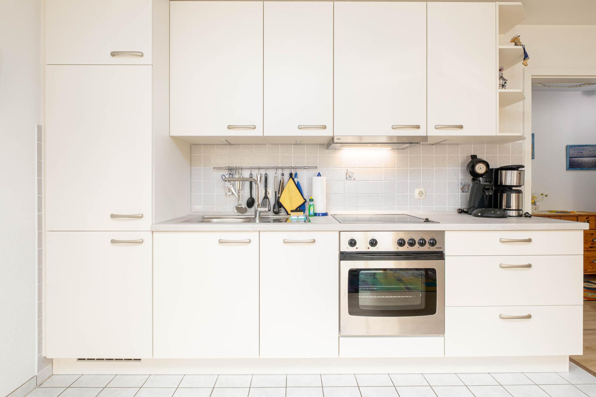 In der 2-Zimmer-Ferienwohnung Nr. 7 im Domizil Strandburg erwartet Sie eine gemütliche Ferienwohnung in der 1. Etage mit möbliertem Balkon. Die Timmendorfer Strand Ferienwohnung verfügt über ein Wohnzimmer mit moderner Couchgarnitur, Flachbild-TV mit Zugriff auf Mediathek via WLAN, DVD-Player sowie CD-Player, eine Essecke im Erker und einen komplett eingerichteten offenen Küchenbereich mit modernsten Geräten (Ceranfeld, Backofen, Geschirrspüler etc.). Darüber hinaus finden Sie eine Filter Kaffeemaschine, einen Milchaufschäumer und eine Senseo Maschine vor.