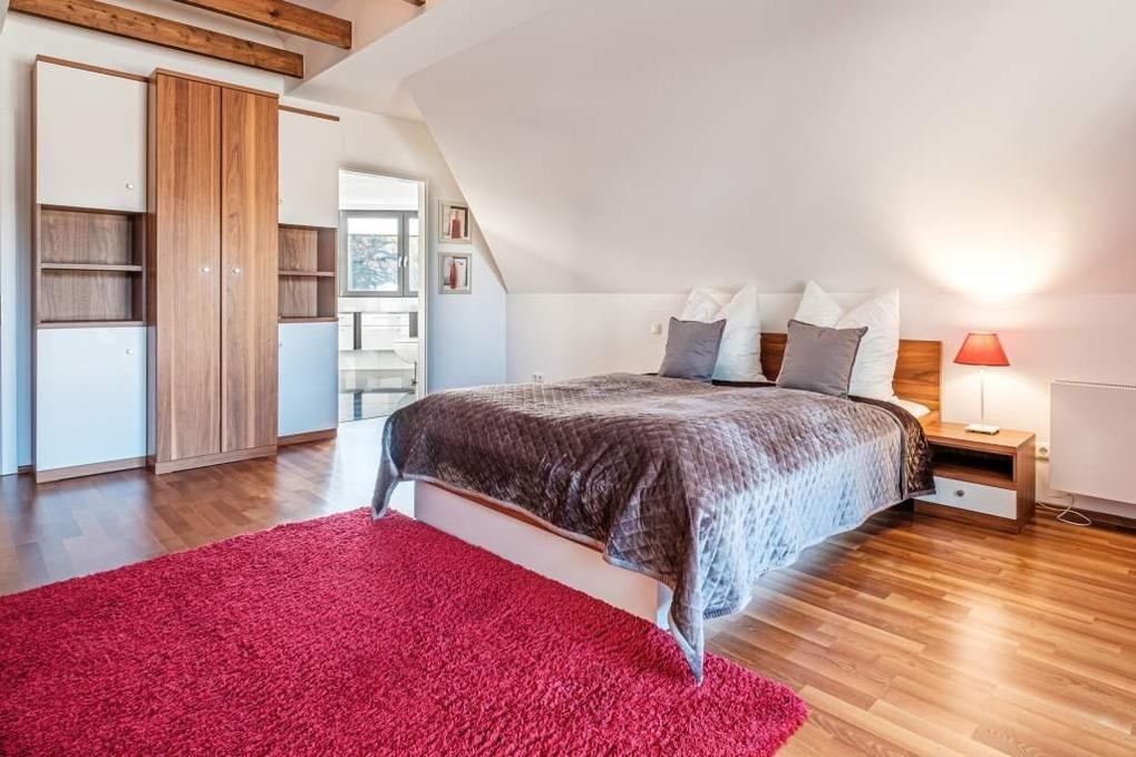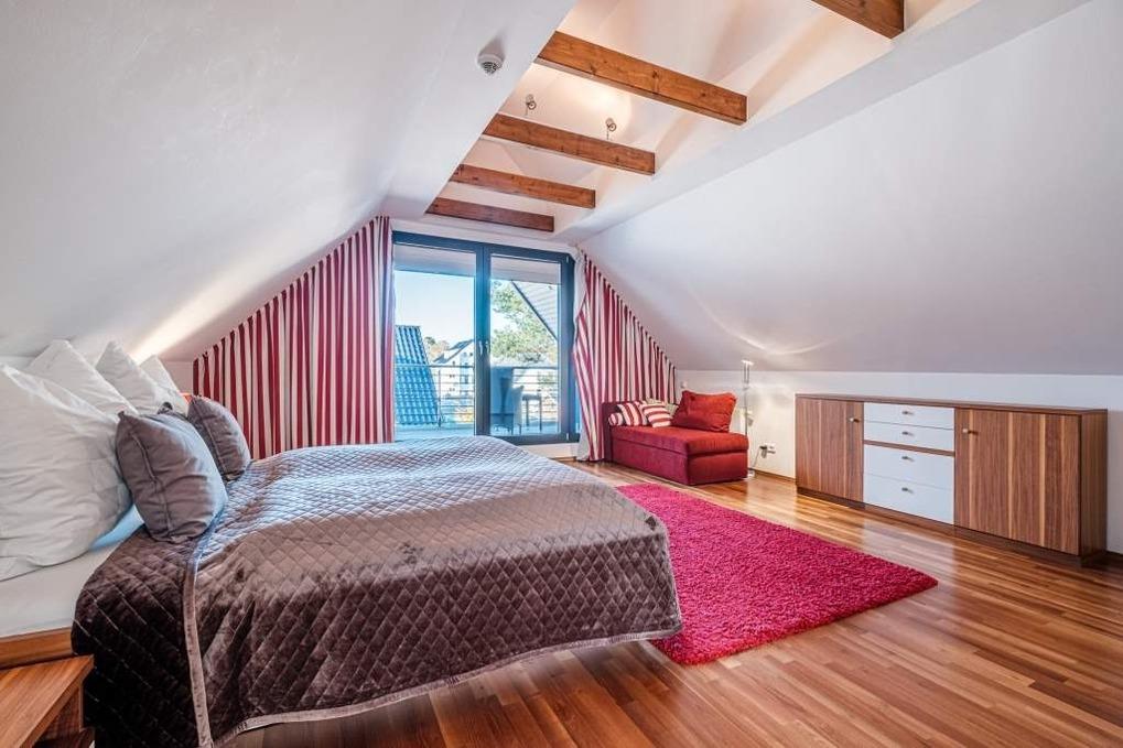 In der 2. Etage bieten wir Ihnen ein modernes 2-Zimmer-Appartement für 3 Personen plus Kind an. Diese Timmendorfer Strand Ferienwohnung ist mit einem separatem Schlafzimmer auf der 2. Ebene (über eine Treppe erreichbar) mit Doppelbett (180x200cm), sowie einem Schlafsofa für 1 Kind ausgestattet.