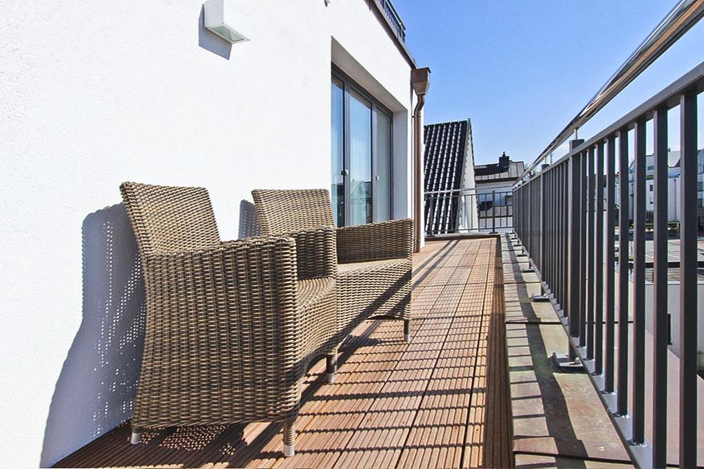 Hier erwartet Sie eine moderne Ferienwohnung Timmendorfer Strand für maximal 2 Personen in der 2. Etage mit einem großen Penthouse-Balkon in Süd-/Westlage. Das moderne Wohnzimmer verfügt über einen Couchbereich mit Flatscreen-TV und Blu-Ray-Player. Ebenfalls befinden sich in diesem Raum der großzügige Essbereich und die Küche. Diese verfügt über Geschirrspüler, Backofen, Cerankochfeld, Mikrowelle, Nespresso-Kaffeemaschine, Toaster und Wasserkocher. Das separate Schlafzimmer der Timmendorfer Strand Ferienwohnung ist mit einem Doppelbett (180x200cm) eingerichtet. Das große Badezimmer ist mit einer Dusche ausgestattet. Der große Penthouse-Balkon in Süd-/Westlage mit Markise rundet dieses wunderschöne Appartement im Zentrum von Timmendorfer Strand ab.