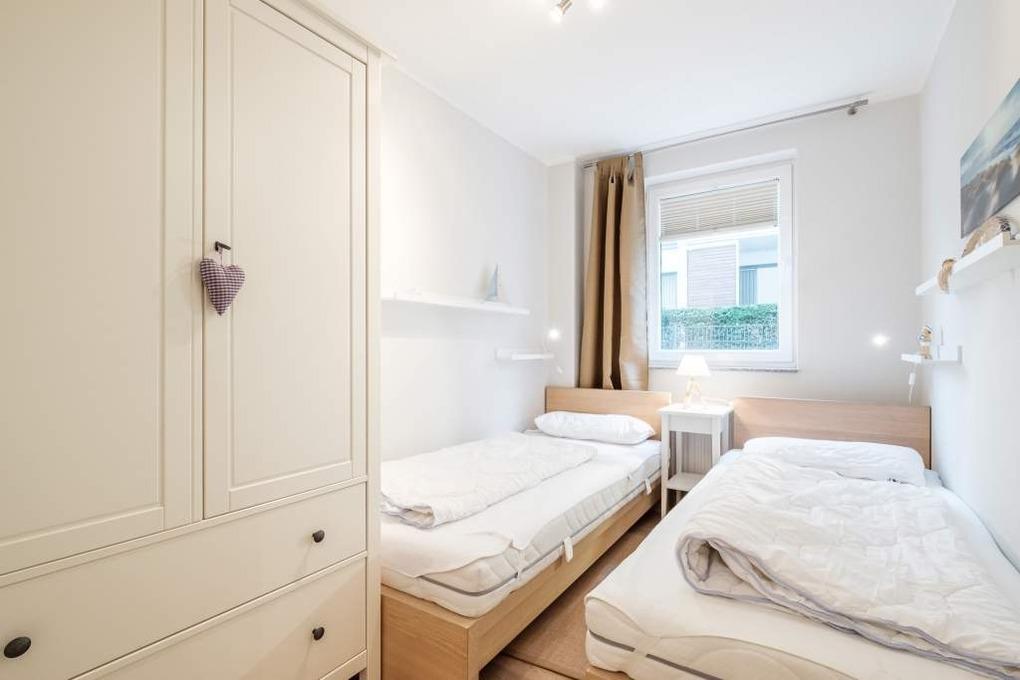 Das zweite separate Schlafzimmer verfügt über 2 Einzelbetten. Die möblierte Terrasse in Ost-Ausrichtung mit Blick Richtung Ostsee rundet dieses wunderschöne Urlaubsdomizil ab.