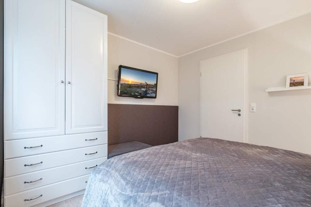 Das Elternschlafzimmer dieser Ferienwohnung ist mit einem Doppelbett (160x200cm) ausgestattet und verfügt über einen 2. Flatscreen-TV.