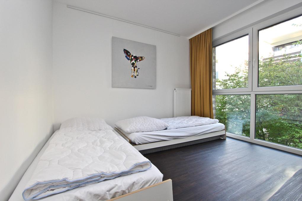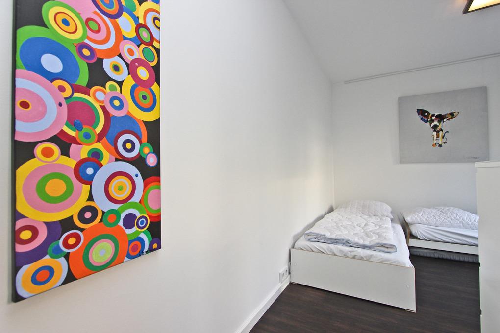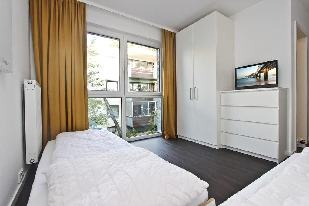 Die Timmendorfer Strand Ferienwohnung verfügt über 2 Schlafzimmer. Das Schlafzimmer I ist mit einem Doppelbett (160x200cm) eingerichtet und hat einen direkten Zugang zu dem Badezimmer I. Das Schlafzimmer II verfügt über zwei Einzelbetten (jeweils 90x200cm), die als Doppelbett zusammengestellt werden können, sowie einen 2. Flatscreen-TV. Ein 2. Badezimmer mit Dusche ist ebenfalls vorhanden.