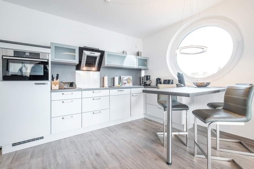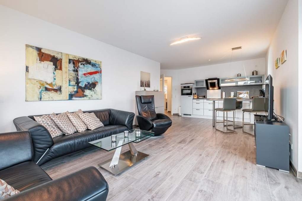 Es erwartet Sie ein modernes, liebevoll eingerichtetes Appartement in der 1. Etage für 3 Personen. Die Timmendorfer Strand Ferienwohnung verfügt über ein Wohnzimmer mit hochwertiger Couchgarnitur, Flatscreen-TV, Stereo-Anlage, DVD-Blue-Ray-Player, sowie einer offenen Einbauküche mit Ceranfeld, Backofen und Geschirrspüler. Darüber hinaus finden Sie eine Filter Kaffeemaschine und eine Senseo Maschine vor. Eine schöne Essecke, in der man Urlaubspläne schmieden kann, rundet dieses Zimmer ab.