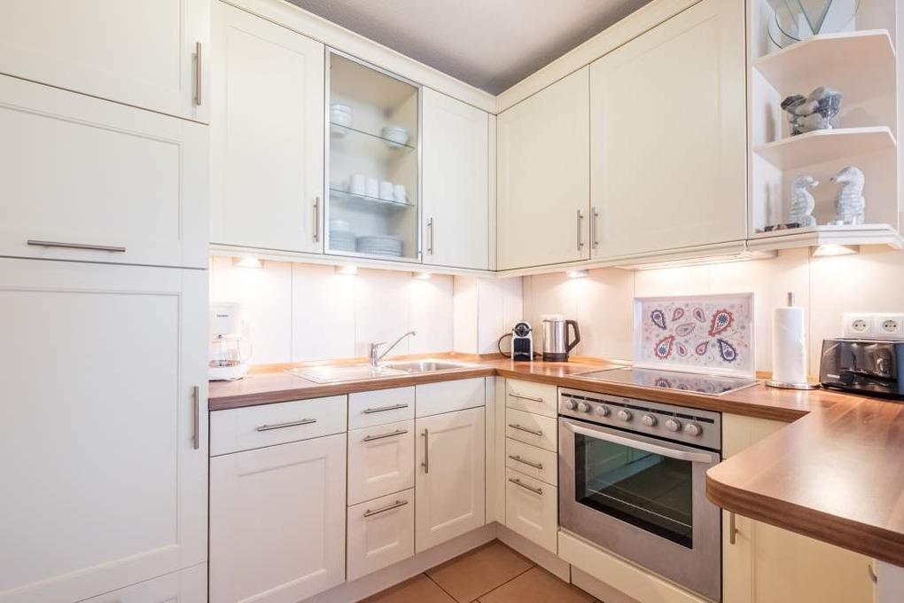 Das gemütliche 3-Zimmer-Appartement Nr. 11 liegt in der 1. Etage mit Balkon und ist für maximal 4 Personen ausgestattet. Diese Timmendorfer Strand Ferienwohnung verfügt über ein Wohnzimmer mit einer hochwertigen Couchgarnitur, Flachbild-TV, eine gemütliche Essecke und eine offene Einbauküche mit Ceranfeld, Backofen, einer Nespresso- sowie eine einfache Kaffeemaschine, Mikrowelle und Geschirrspüler, ein modernes Duschbad und eine geschmackvoll eingerichtete Diele.