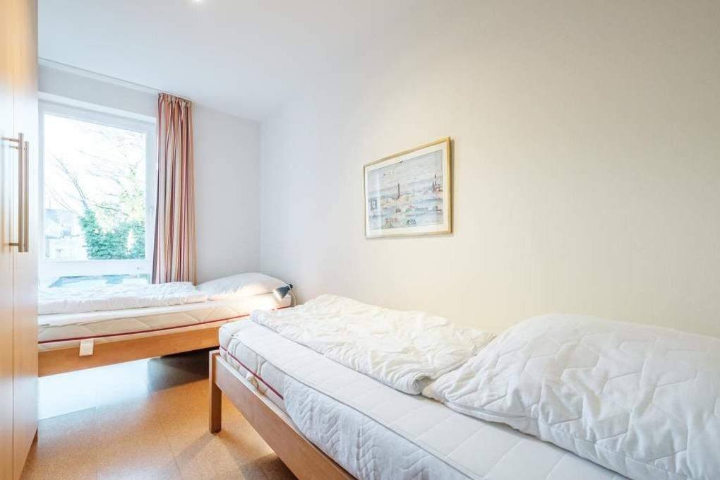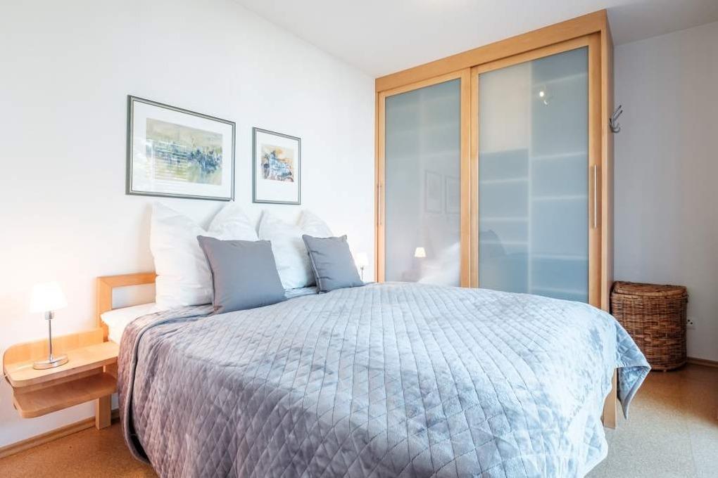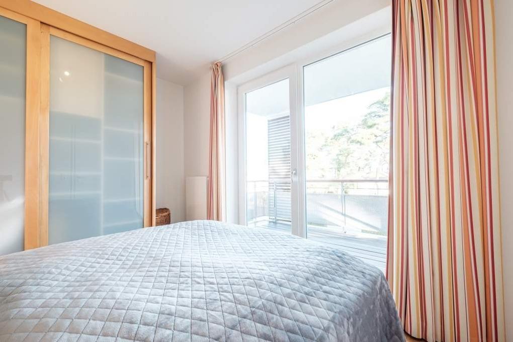 Das Elternschlafzimmer dieser Ferienwohnung ist mit einem Doppelbett (160x200cm) ausgestattet und verfügt über einen 2. Flatscreen-TV. Das zweite separate Schlafzimmer verfügt über 2 Einzelbetten (90x200cm). Um Ihnen einen erholsamen Schlaf zu garantieren, lassen sich die Schlafräume der Ferienwohnung verdunkeln. Der möblierte Balkon in Nord-Ost-Lage mit Blick Richtung Ostsee rundet dieses wunderschöne Urlaubsdomizil ab.