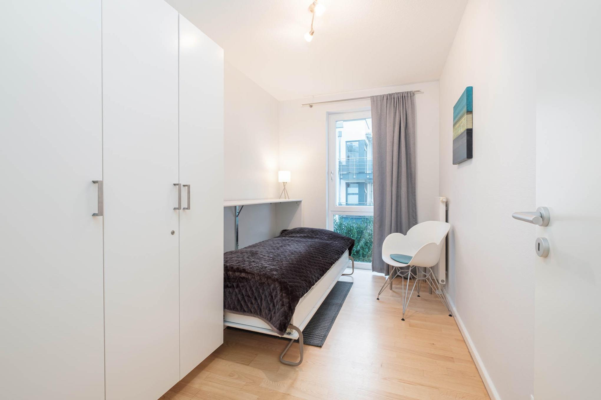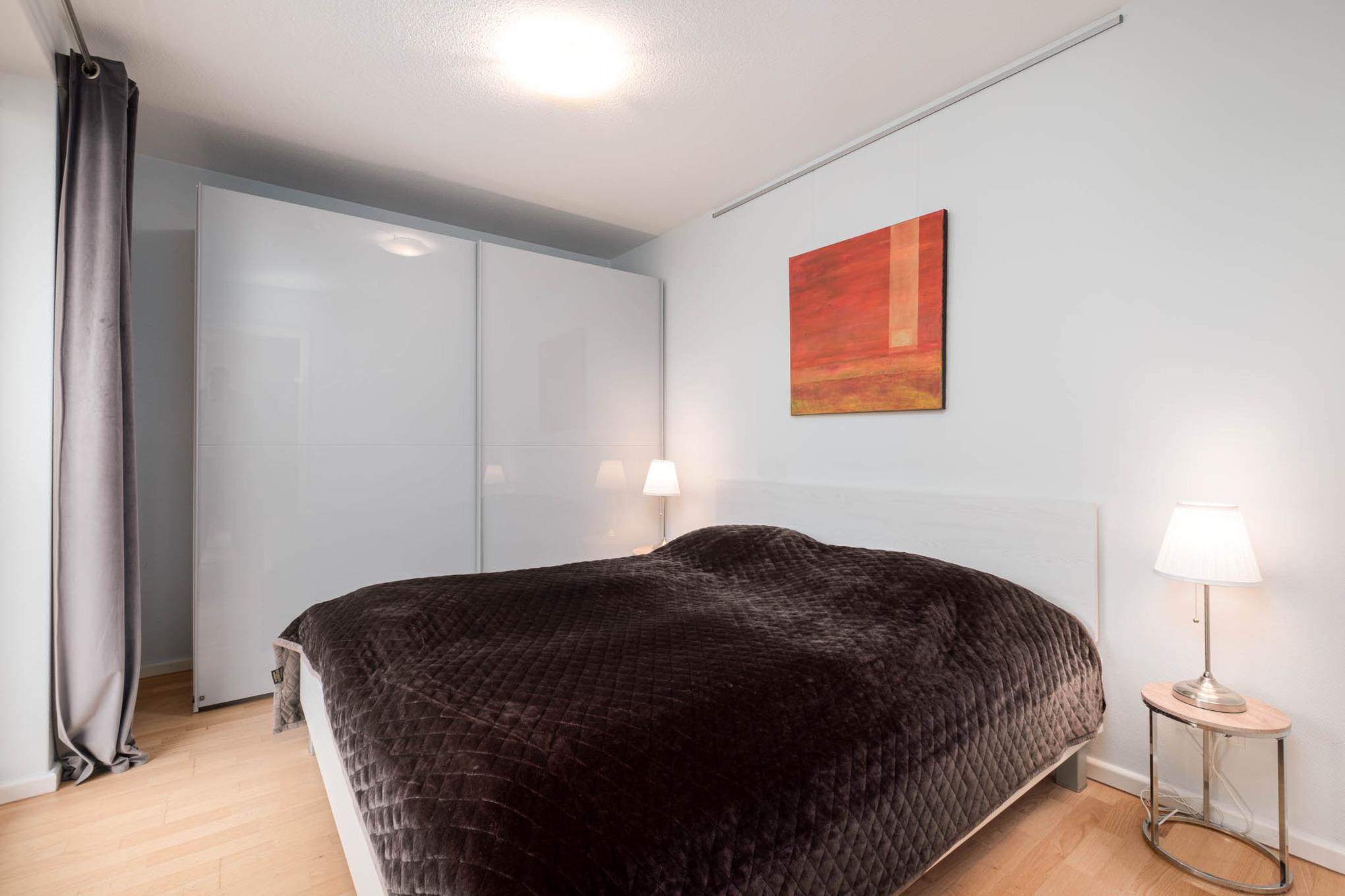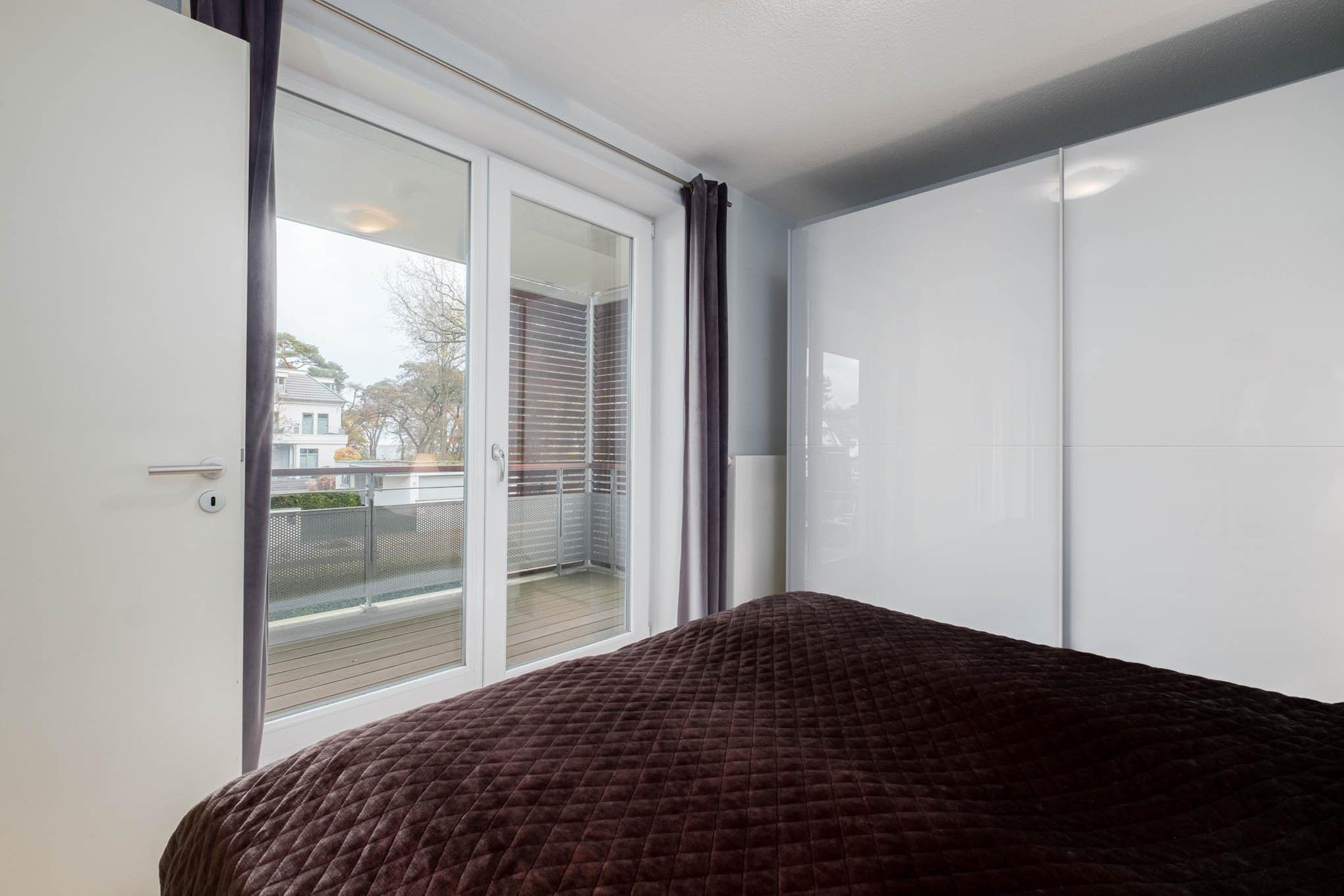 Das Elternschlafzimmer dieser Ferienwohnung ist mit einem Doppelbett (180x 200 cm) ausgestattet. Das zweite separate Schlafzimmer der Ferienwohnung Timmendorfer Strand verfügt über ein Einzelbett. Um Ihnen einen erholsamen Schlaf zu garantieren, lassen sich die Schlafräume der Ferienwohnung verdunkeln. Der möblierte Balkon in Nord-Ost-Lage mit Blick Richtung Ostsee rundet dieses wunderschöne Urlaubsdomizil ab.