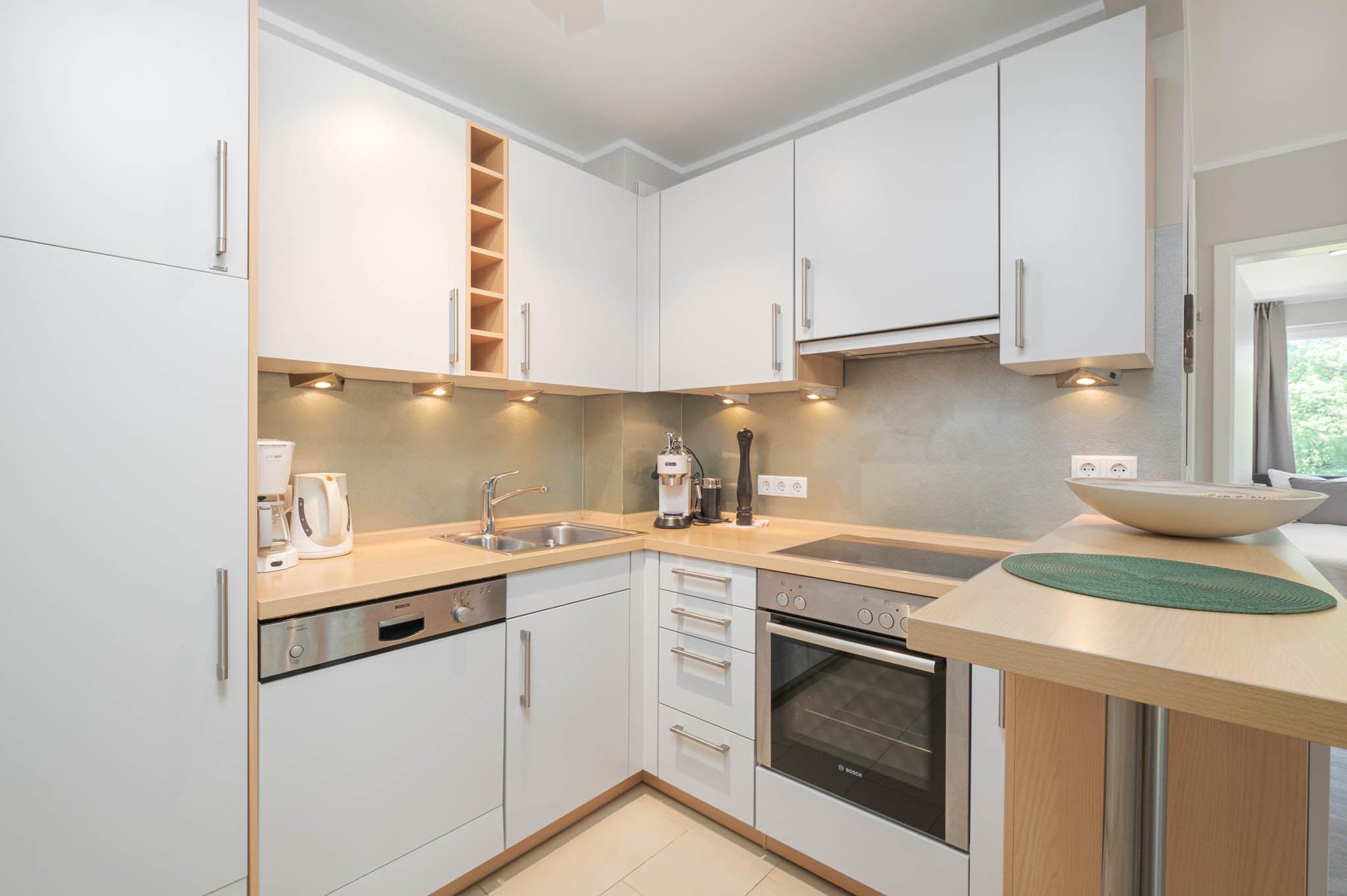 Diese Ferienwohnung Timmendorfer Strand verfügt über ein Wohnzimmer mit einer hochwertigen Couchgarnitur, Flachbild-TV, DVD-Player, eine gemütliche Essecke und eine offene Einbauküche mit Ceranfeld, Backofen, Mikrowelle und Geschirrspüler. Das moderne Badezimmer ist mit einer Dusche eingerichtet. Die Diele ist geschmackvoll und großzügig geschnitten.
