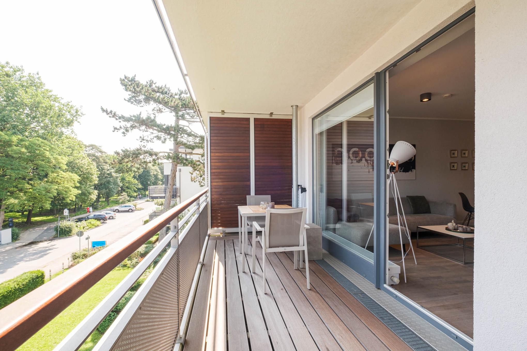 Der möblierte Balkon in Nord-Ost-Ausrichtung mit Blick Richtung Ostsee rundet dieses wunderschöne Urlaubsdomizil ab.