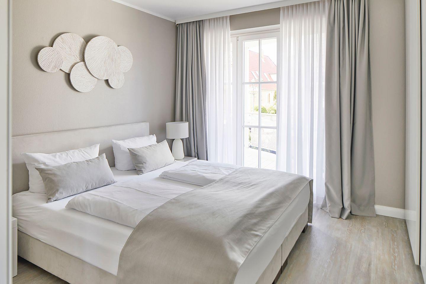 Beide Schlafzimmer sind über den Flur erreichbar und wurden mit einem Boxspringbett, Schiebeschrank und verdunkelbaren Gardinen liebevoll ausgestattet. Das Hauptschlafzimmer verfügt ein Boxspringbett mit Überlänge, Smart-TV und einen Zugang zum Balkon und den Zugang zum Bad. Über eine Schiebetür vom Wohnzimmer oder über den Flur haben Sie zu dem zweiten Schlafzimmer Zugang, wodurch eine besondere Großzügigkeit erreicht wird. Das neue Bad mit Fenster beinhaltet neues Mobiliar sowie eine große Dusche. Das Gäste-WC geht vom Flur ab und dient als zweites, kleines Bad. Die separate Küche wurde mit einem kleinem Essplatz, modernem Küchenequipment wie einer Nespresso-Kaffeemaschine oder einer Spülmaschine ausgestattet. Von hier gelangen Sie zu dem überdachtem Balkon, der mit einer schönen Dining-Lounge zu entspannten Stunden auch in der Abendsonne einlädt.