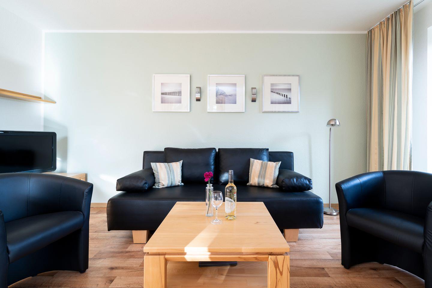 Helle 2-Zimmer-Ferienwohnung mit Balkon für 2-4 Personen im Appartementhaus in Timmendorfer Strand.
