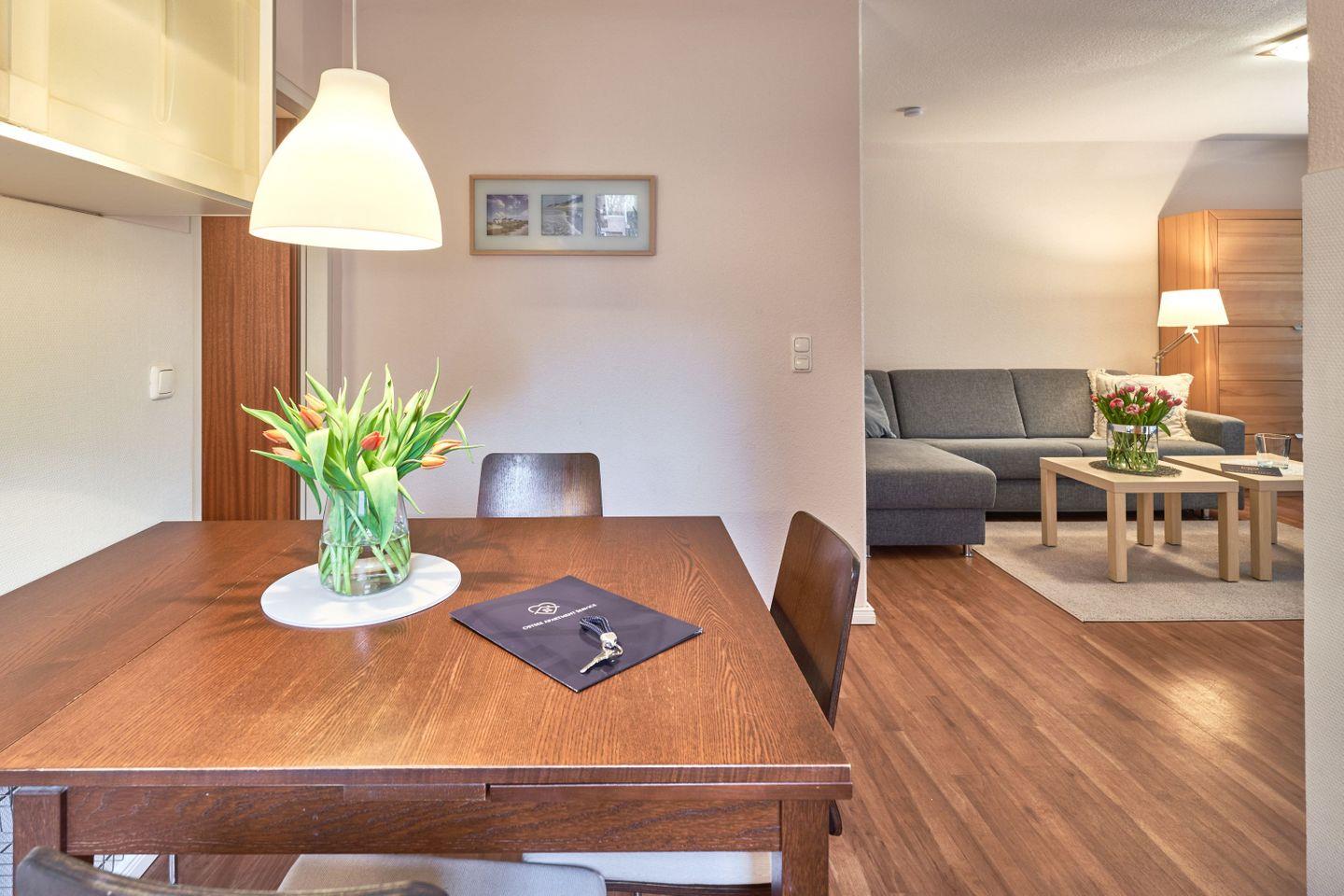 Ein eigener Tiefgaragenstellplatz mit direktem Zugang zum Aufzug ermöglicht Ihnen eine bequeme und wettergeschützte Anreise bis vor die Wohnungstür. Kostenloses WLAN steht Ihnen im gesamten Apartment zur Verfügung.