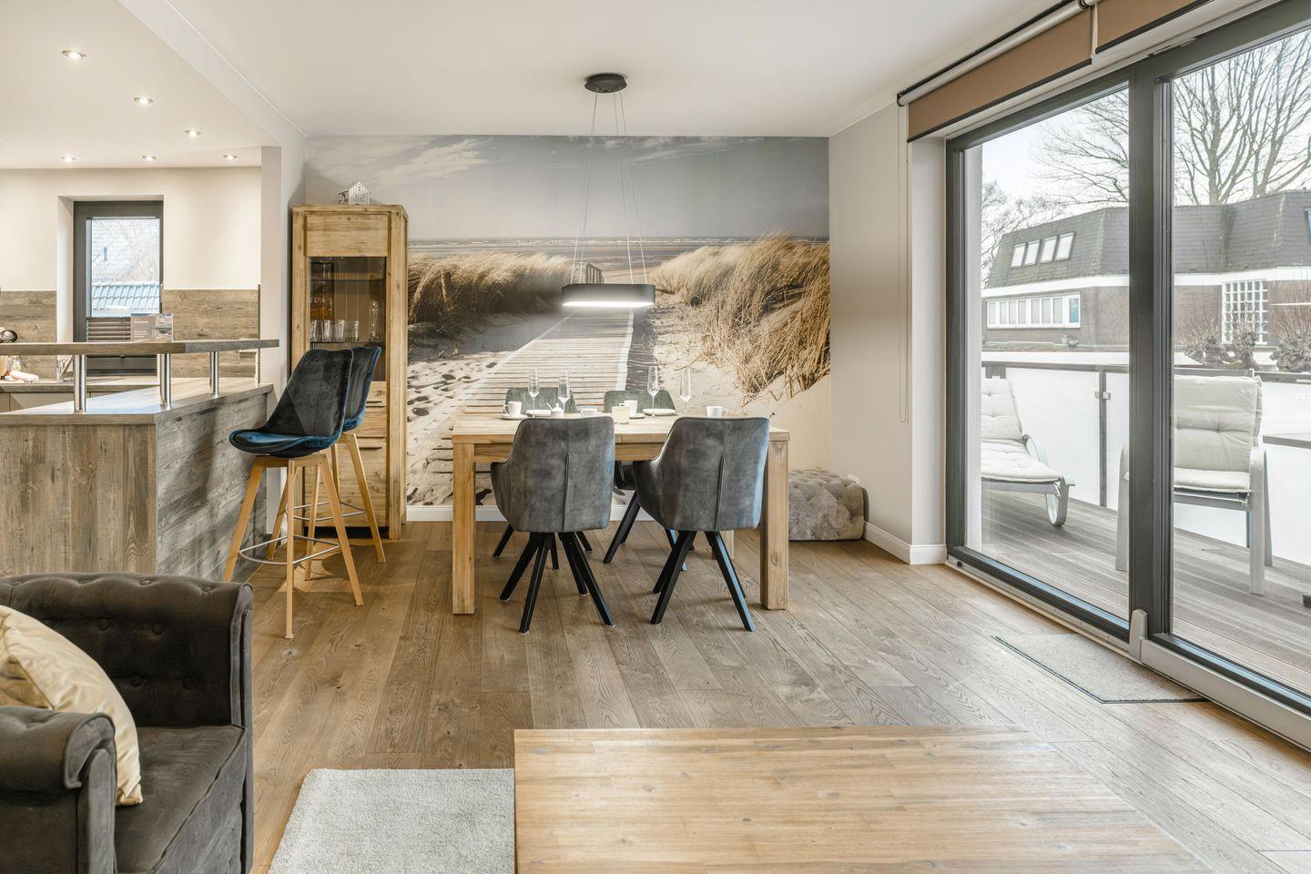 Die Ferienwohnungen Strandkorb und Strandblick befinden sich im 1. Obergeschoss. Sie sind jeweils 60 qm groß, für bis zu vier Personen ausgestattet und zeichnen sich durch ihre helle Gestaltung, den hochwertigen Echtholz-Parkettboden und ihre anspruchsvolle und detailverliebte Einrichtung aus. Mittelpunkt jeder Wohnungen ist der offene Wohnbereich, der Küche, Wohn- und Essbereich miteinander verbindet.