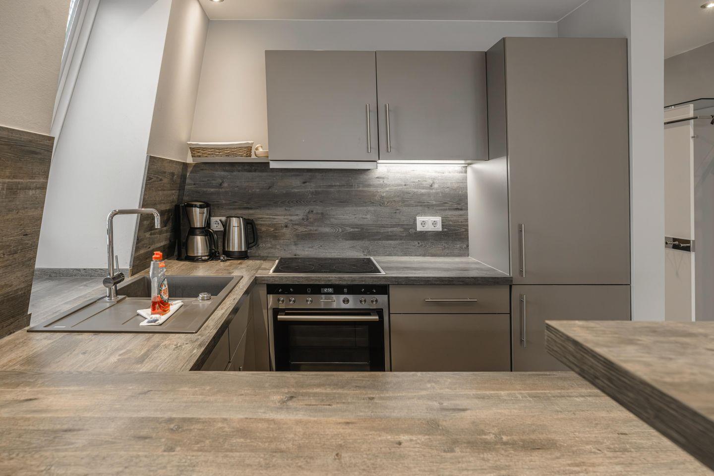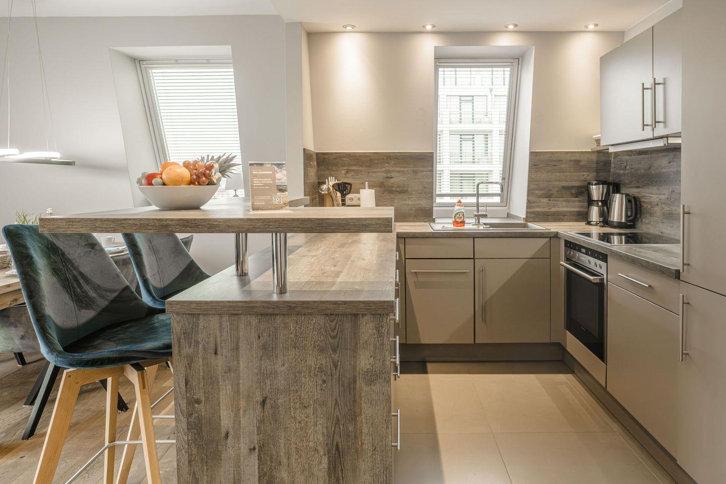 Der offene Wohnbereich bietet mit seinem modernen Küchentresen in Kombination mit dem angrenzenden Wohnzimmer und Essbereich viele Gelegenheiten für eine wundervolle gemeinsame Zeit. An schönen Sommerabenden lockt der großzügig geschnittene Südbalkon, auf dem man auch zu fortgeschrittener Tageszeit noch die wärmende Abendsonne genießen kann.