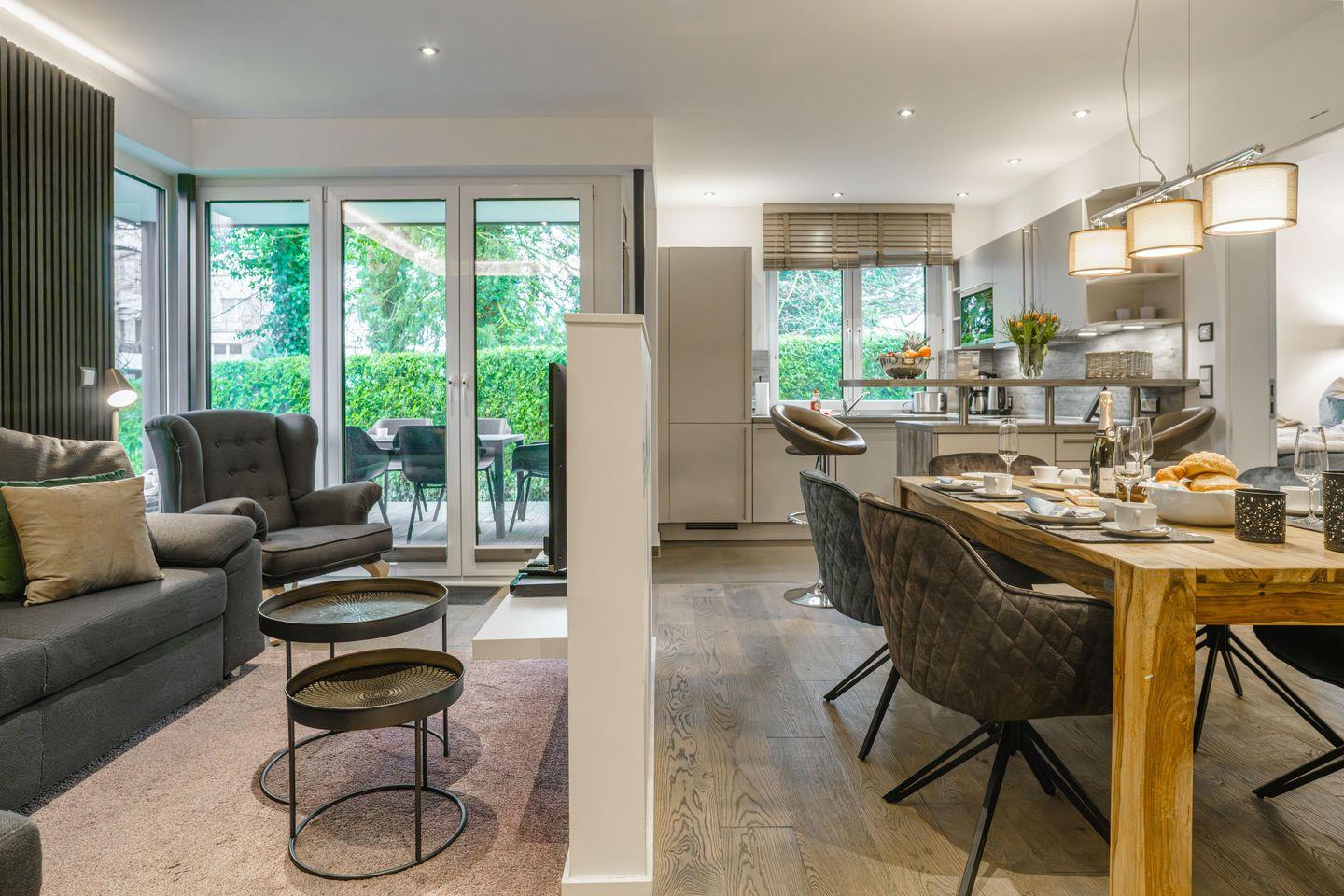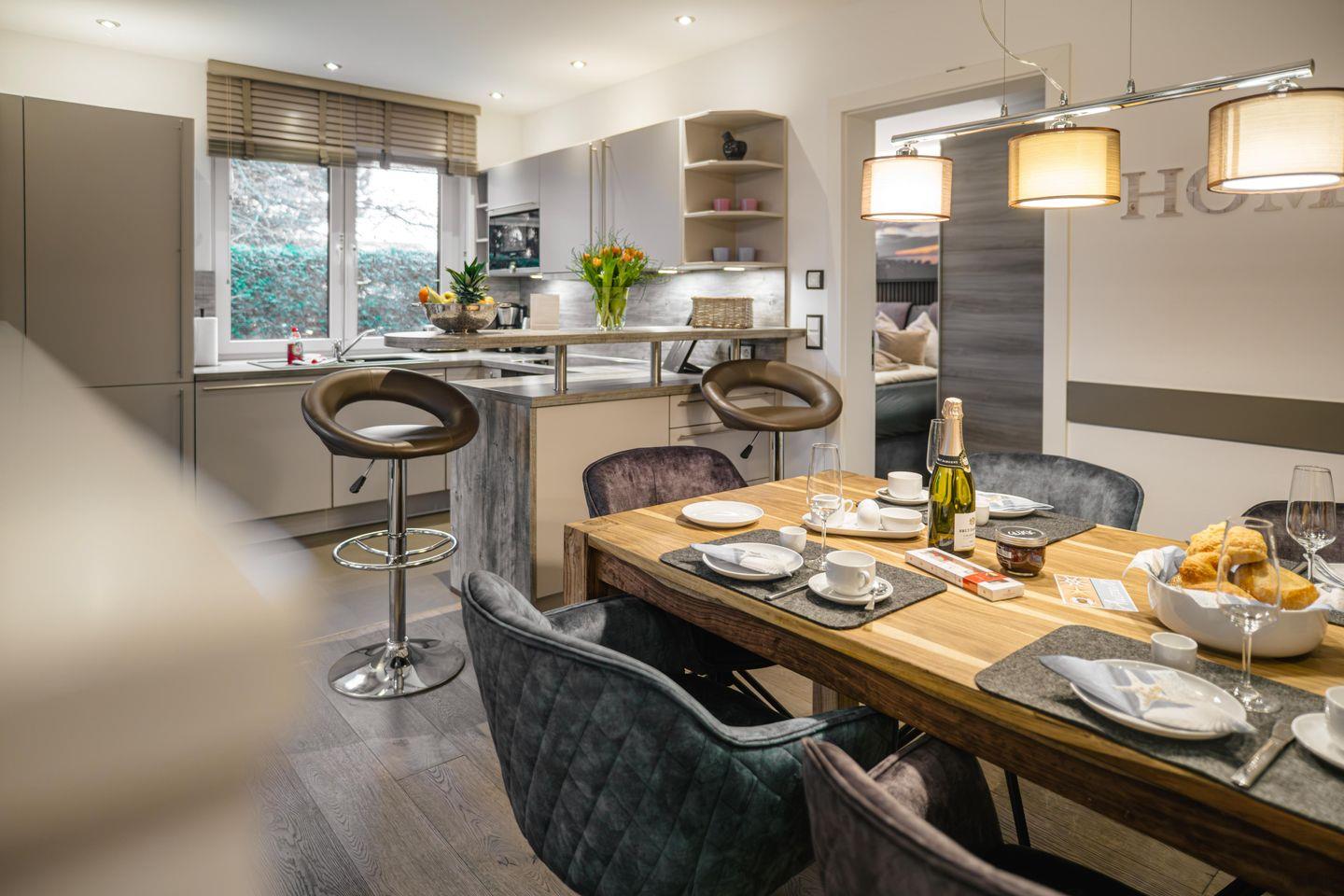 Mittelpunkt beider Wohnungen ist der offene Wohnbereich, der Küche, Wohn- und Essbereich miteinander verbindet. Das Highlight ist ein separater Gartenbereich, wo Sie frühstücken oder gemütlich entspannen können.