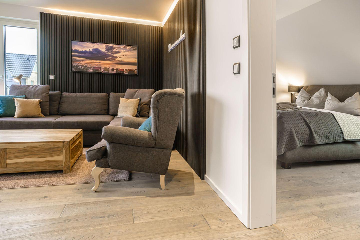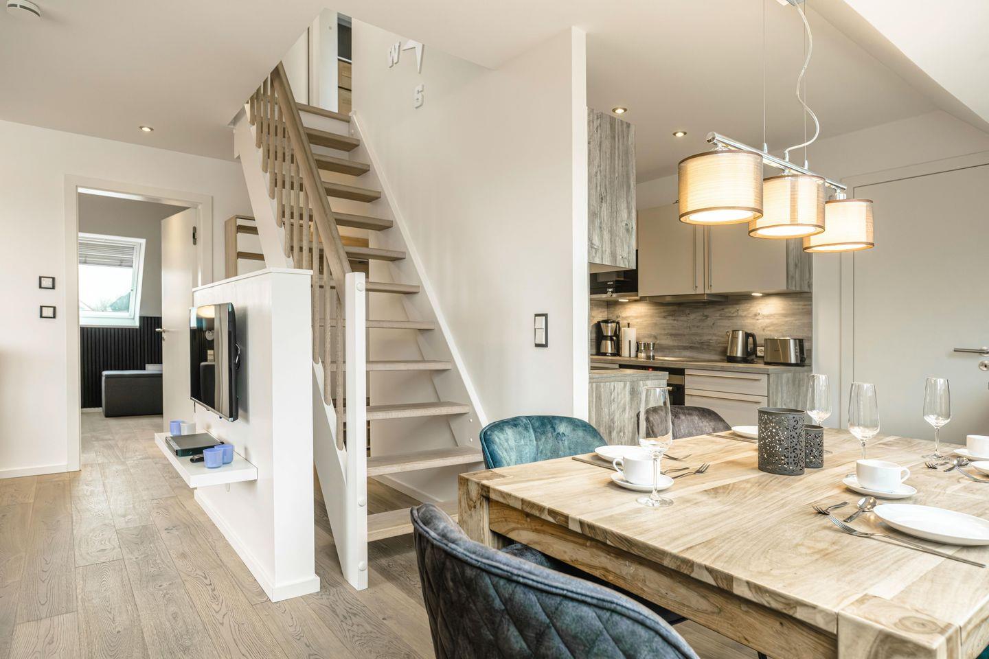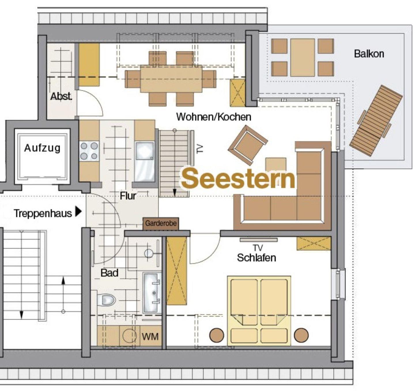 Die Ferienwohnungen Seestern und Seebrücke befinden sich im 2. Obergeschoss. Es sind 70 qm große Maisonette-Wohnungen für bis zu sechs Personen. Wie die anderen Wohnungen des Baltic House zeichnen auch sie sich durch ein helles und modernes Design, ihre anspruchsvolle Möblierung und den Echtholz-Parkettboden mit Fußbodenheizung aus.