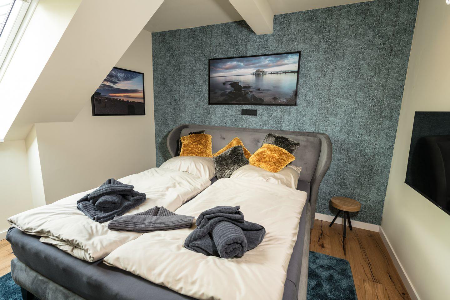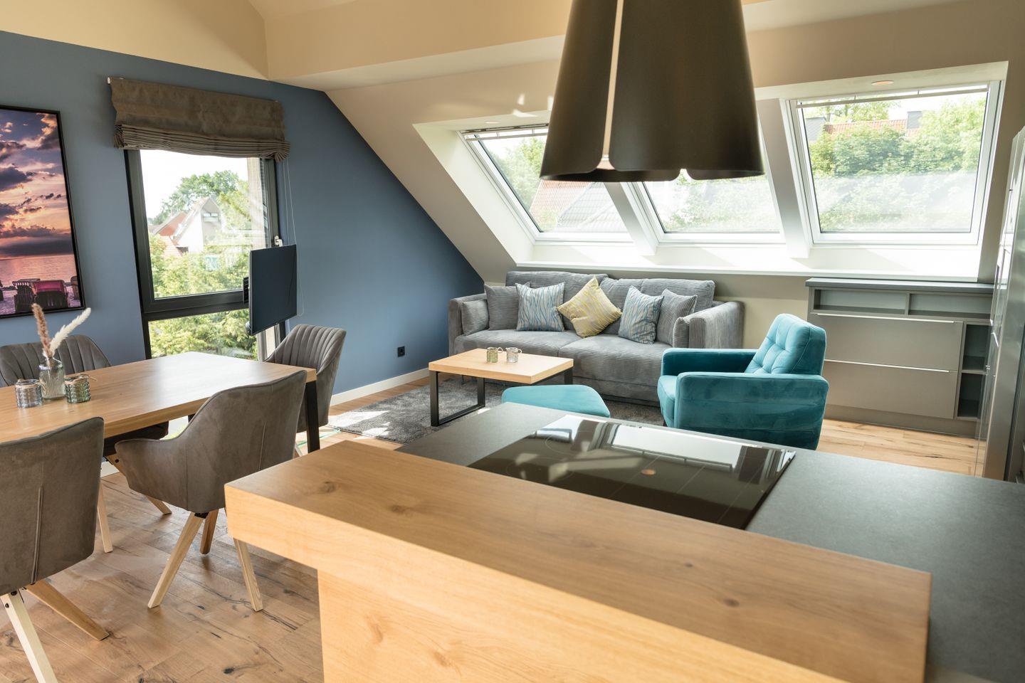 Eine knapp 80 Quadratmeter große Ferienwohnung mit dem gewissen Etwas. Sobald Sie die Tür aufschließen, sind Sie im „Siebten Himmel“. Ein traumhafter Ausblick auf einer großen Dachterrasse mit hochwertigen Gartenmöbel, zwei gemütliche Schlafzimmer mit großen Boxspringbetten, ein Wohn und Essbereich mit Panoramablick und zwei Duschbädern, die einer Wellness-Oase gleichen, versprechen einen unvergesslichen Urlaub.