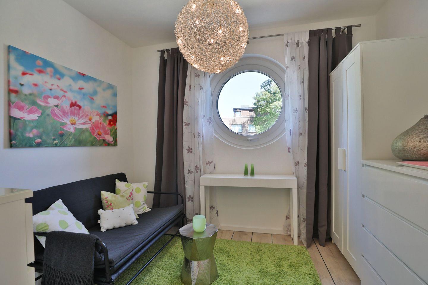 Ein Schlafzimmer mit einem großzügigen Boxspringbett verspricht erholsame Nächte, während im zweiten Schlafzimmer eine Schlafcouch (120 x 200 cm) Platz für zwei Kinder oder einen Erwachsenen bietet. Das moderne Badezimmer mit geräumiger Dusche und großem Waschbecken vervollständigt die hochwertige Ausstattung.