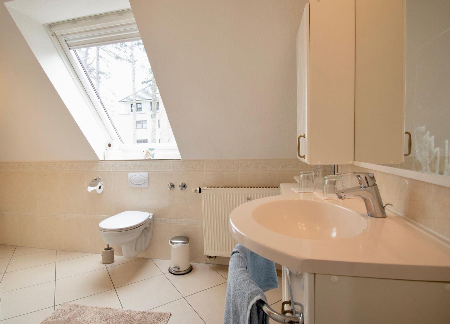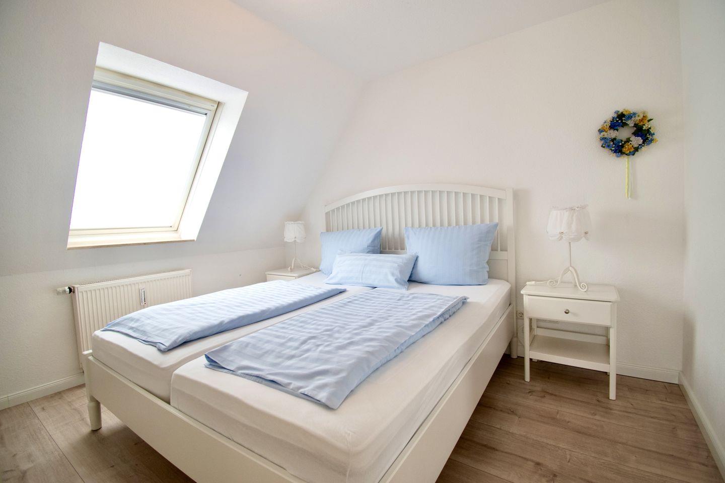 Das Schlafzimmer lädt mit einem komfortablen Doppelbett zum erholsamen Schlaf ein. Im modernen Badezimmer mit einer Dusche, WC und einem großen Waschtisch können Sie sich nach einem Tag am Strand erfrischen. Handtücher liegen für Sie bereit,