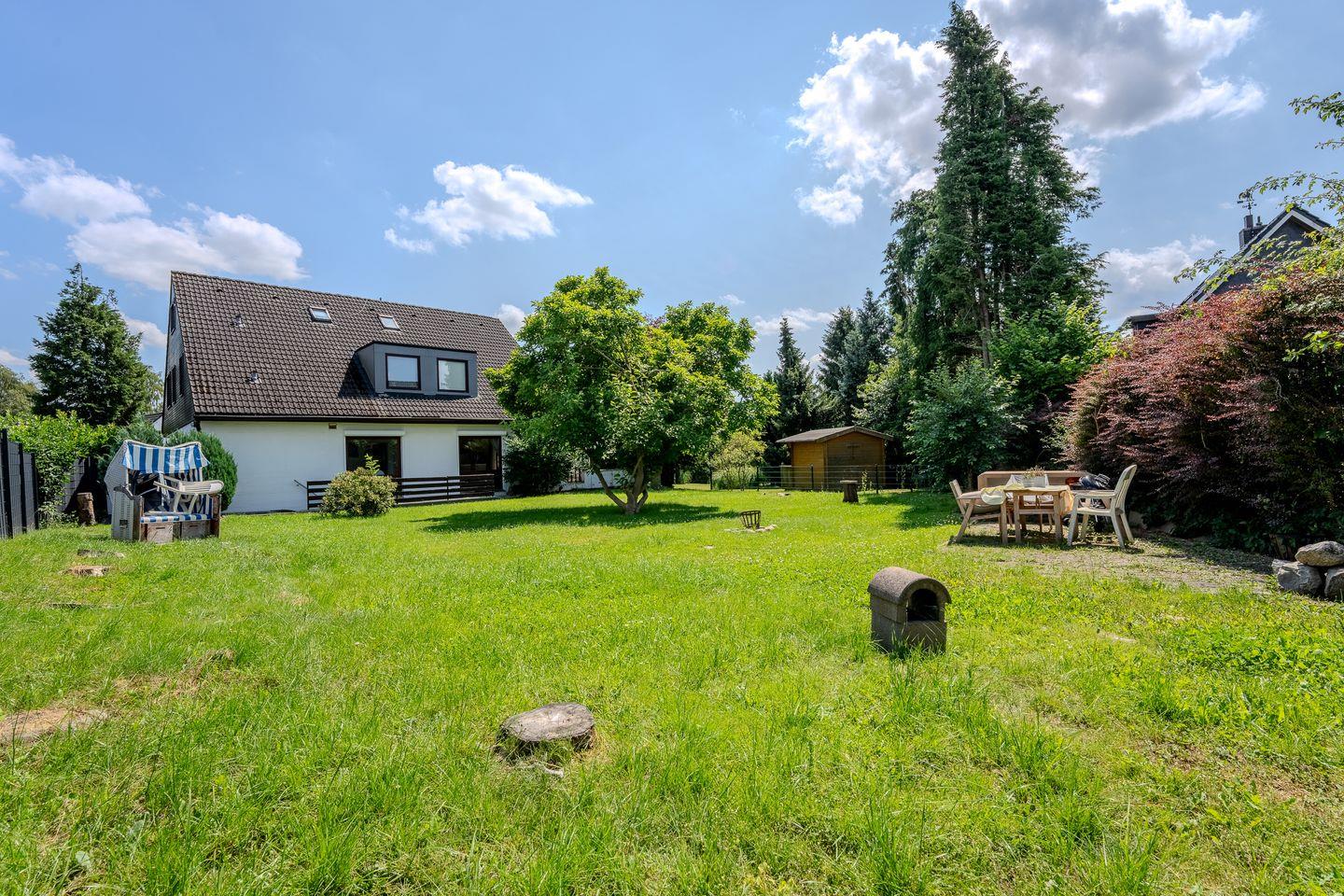 In diesem Ferienhaus mit Terrasse und Garten ist Platz für Familie und Freunde. Genießen Sie "Gemeinsamzeit" auf der Terrasse, oder lassen Sie den Tag entspannt auf der bequemen Sofalandschaft ausklingen. Die Küche ist mit Backofen, Herd und Spülmaschine voll ausgestattet. Zwei Schlafzimmer mit bequemen Doppelbetten befinden sich im EG, ein Schlafzimmer mit Doppelbett befindet sich im Souterrain. Das Badezimmer verfügt über Badewanne, Dusche und Waschmaschine. Gäste-WC separat. WLAN inklusive.
