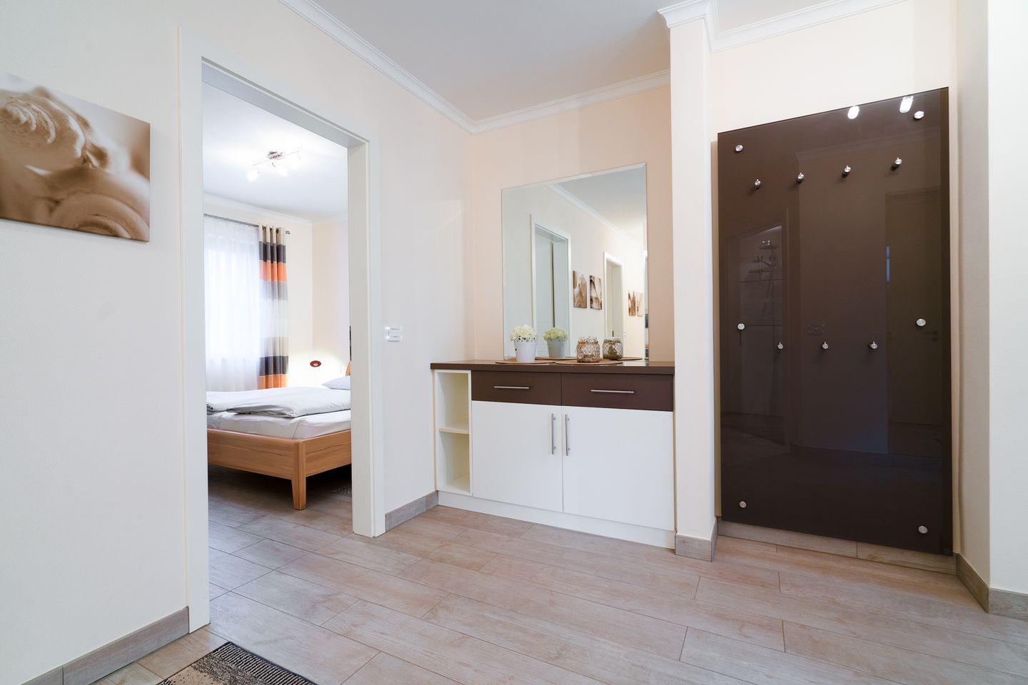 Entdeckt den perfekten Mix aus Komfort und Style in unserer modernen Ferienwohnung am Timmendorfer Strand. Schon beim Eintreten in den hellen, weitläufigen Eingangsbereich werdet Ihr den Raumkomfort spüren, der Euch durch Euren gesamten Aufenthalt begleitet. In der Wohnung gibt es kostenfreies WLAN (bei Störungen kein Anspruch auf Erstattung oder Ersatz). Der großzügige Wohn-/Essbereich, ausgestattet mit einer optional durch eine Schiebetür abtrennbaren Küche, sorgt für ein offenes und einladendes Raumgefühl. Elegante Farbkombinationen aus Dunkelbraun, Sand und Weiß mit Akzenten in Aquamarin, kombiniert mit edlen Hochglanzfronten, bieten ein modernes und wohnliches Ambiente, das zum Entspannen und Genießen einlädt.