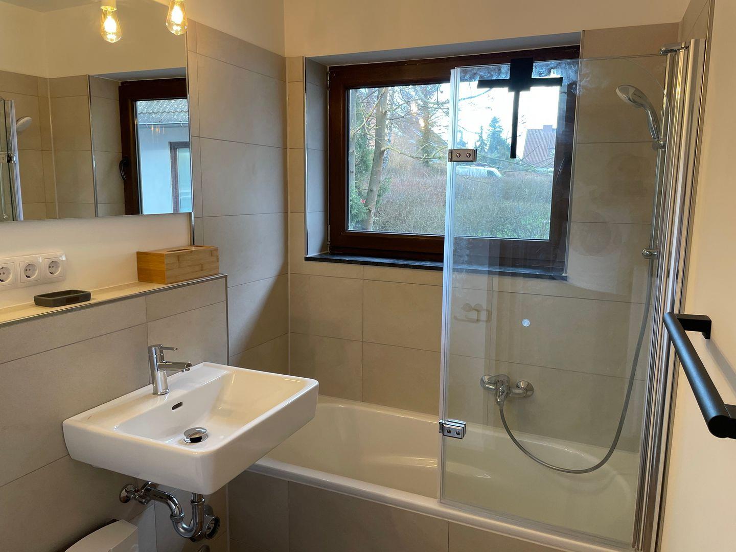 Jedes der 4 Badezimmer ist mit einer Badewanne und/oder Dusche, WC und Waschbecken ausgestattet. Ein Fön und Handtücher sind vorhanden. Die Fußbodenheizung sogt für warme Füße.