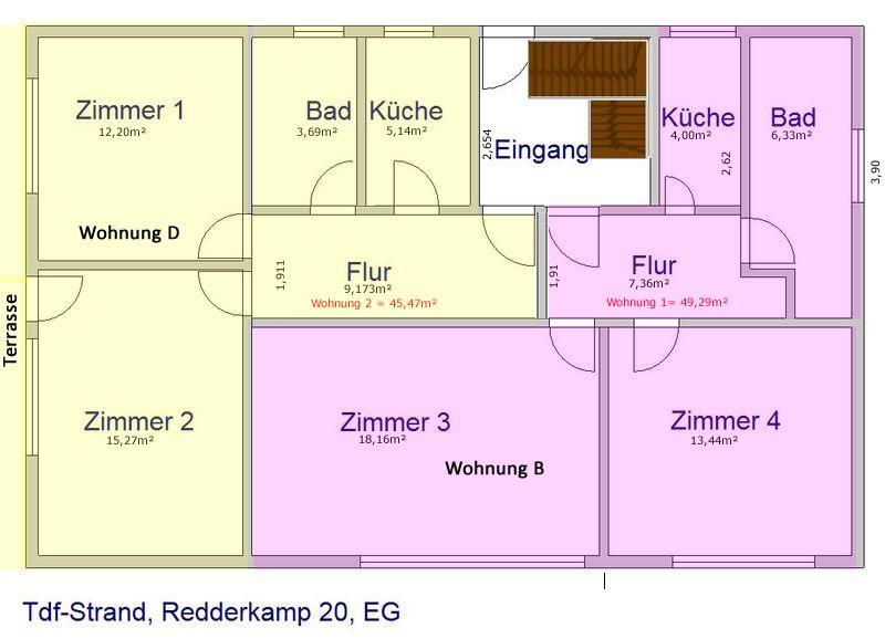 Insgesamt bietet unser Haus Schlafmöglichkeiten für bis zu 16 Personen. Wohnung A bietet 3 Schlafzimmer auf zwei Etagen. Im unteren Bereich finden Sie in Schlafzimmer 1 Doppelbett (180 x 200 cm) und ein Einzelbett (100 x 200). Im ausgebauten Dachboden befinden sich im Schlafzimmer 2 weitere zwei Einzelbetten (90 x 200). Dieses ist das Durchgangszimmer zu Schlafzimmer 3 mit einem komfortablen Doppelbett (180 x 200).