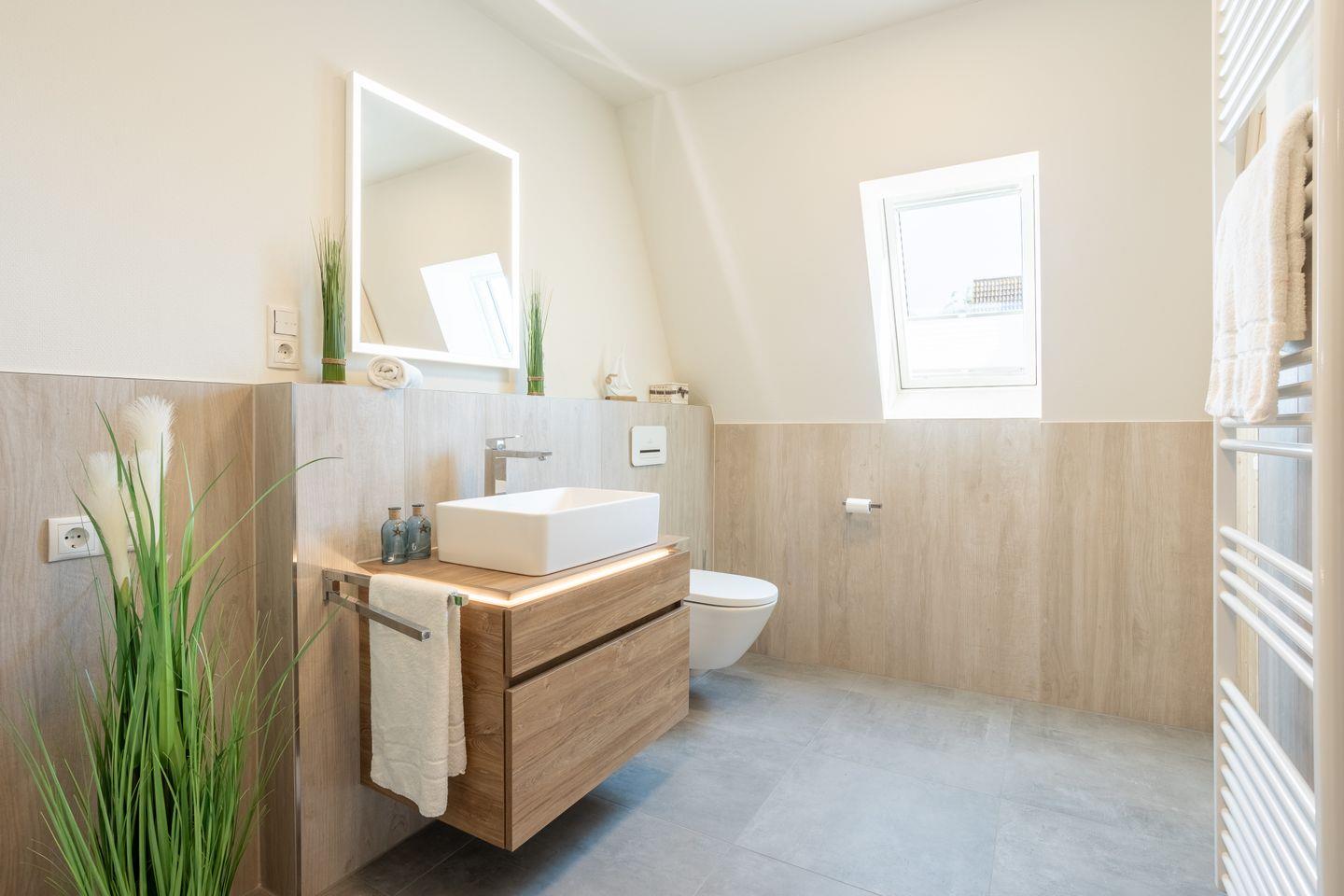Im eleganten Bad mit bodentiefer Rainshower-Dusche erwartet dich deine private Sauna – für besondere Wohlfühlmomente zu jeder Jahreszeit. Hochwertige Materialien und ein durchdachtes Lichtkonzept runden das Wellnesserlebnis ab.