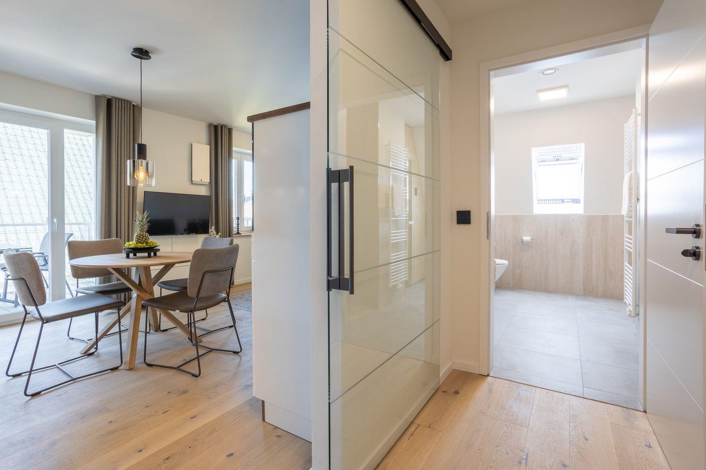 Verbringe deinen Ostseeurlaub in stilvollem Ambiente! Die Wohnung 4 in der Villa Dornkamp kombiniert durchdachtes Design mit hohem Komfort. Helle Räume, klare Linien und eine harmonische Farbgestaltung sorgen für eine entspannte Atmosphäre – perfekt für Paare und Familien.