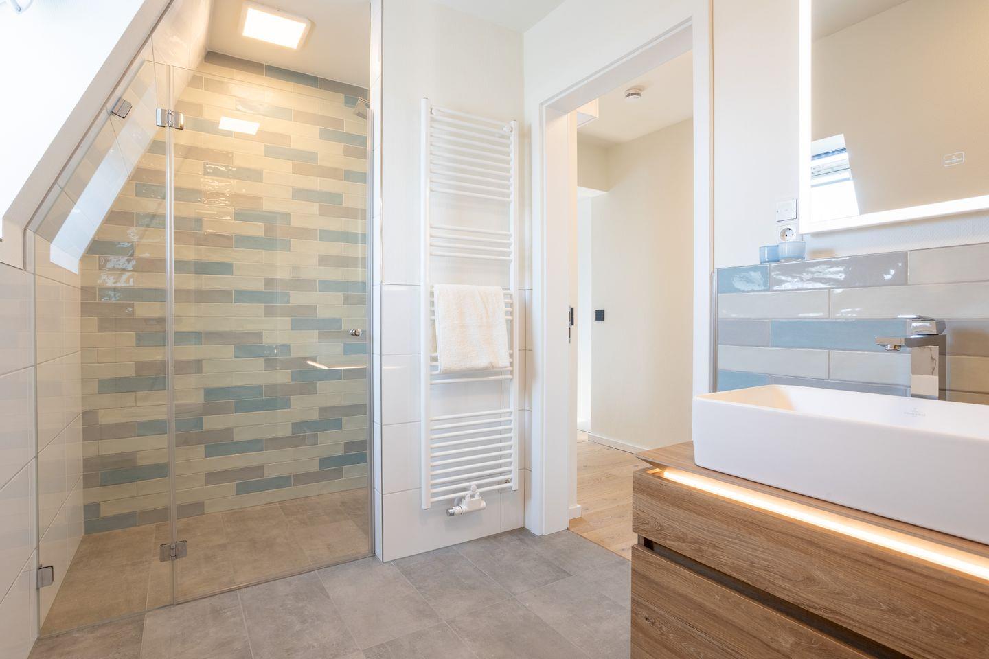 Das hochwertig gestaltete Badezimmer ist deine persönliche Wohlfühloase: mit privater Sauna, bodentiefer Rainshower-Dusche und stilvoller Ausstattung. Hier kannst du entspannen und neue Energie tanken – auch an Regentagen.