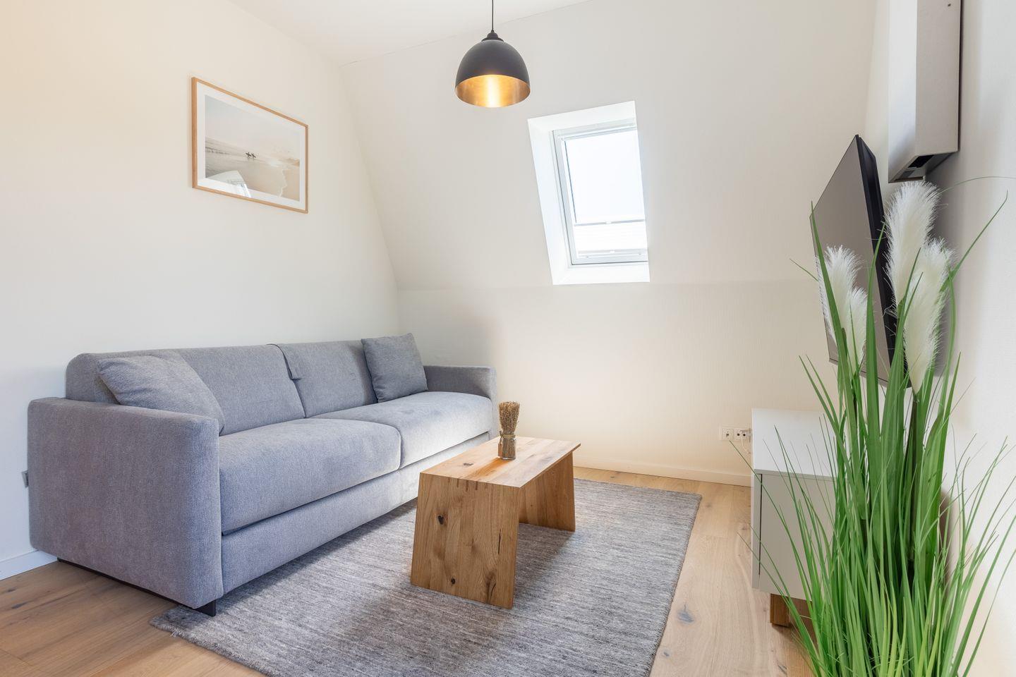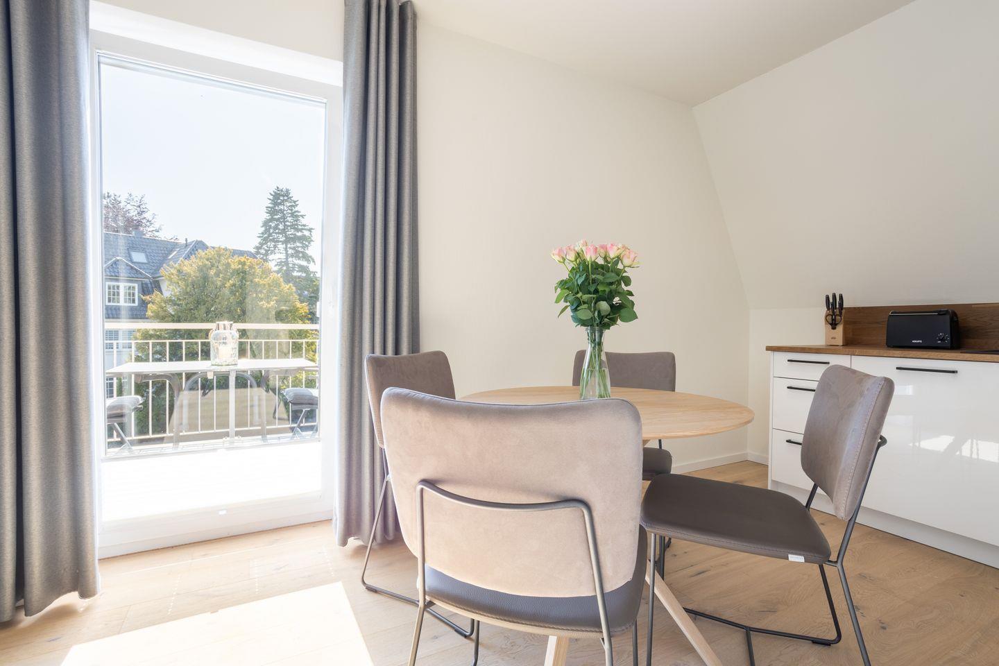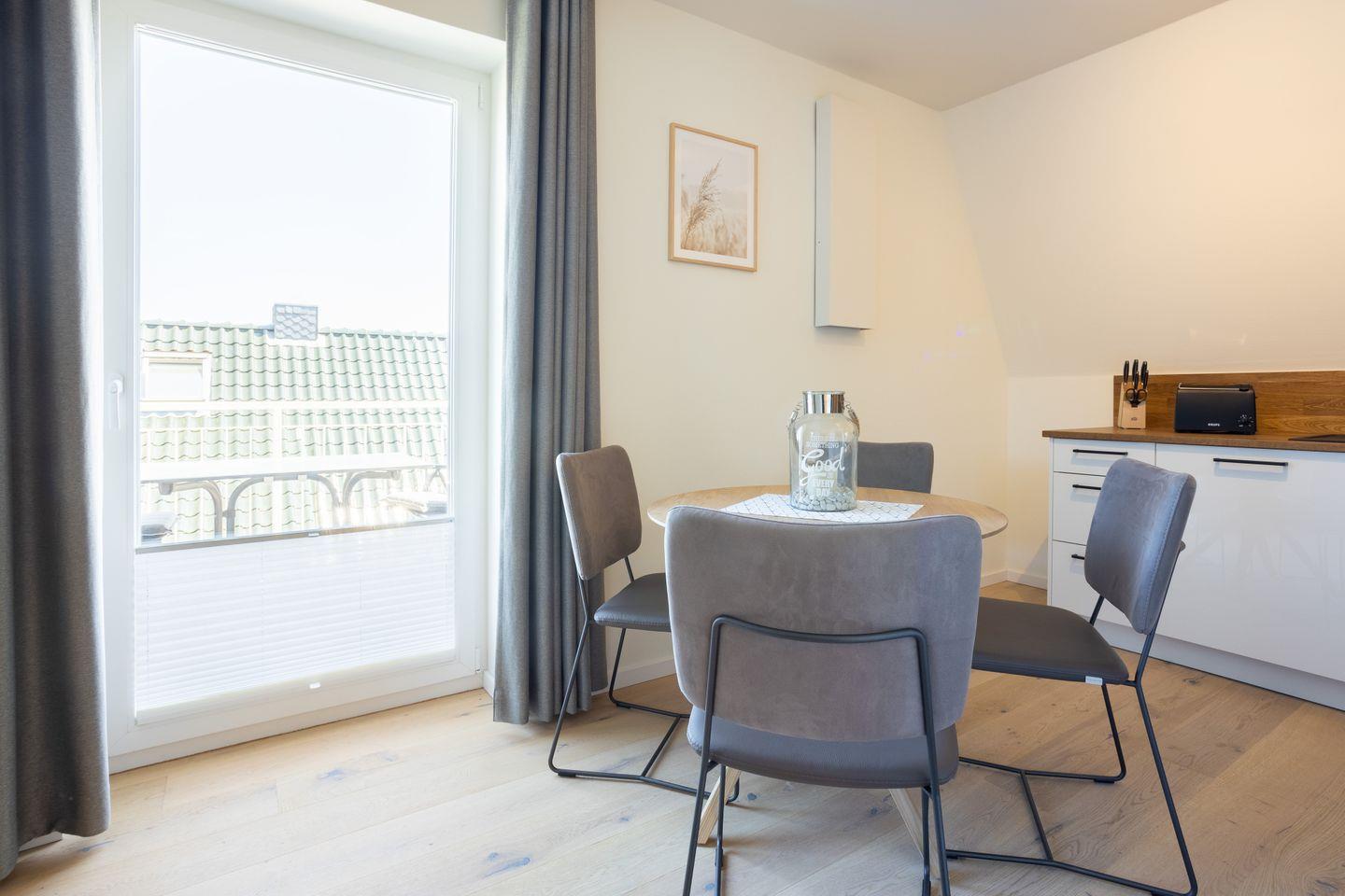 Ankommen und wohlfühlen – die Wohnung 5 in der Villa Dornkamp ist der ideale Rückzugsort für Paare oder kleine Familien, die stilvoll urlauben möchten. Im Dachgeschoss gelegen und bequem per Aufzug erreichbar, erwartet dich ein modernes Ambiente mit harmonischer Farbgestaltung und hochwertigen Materialien.
