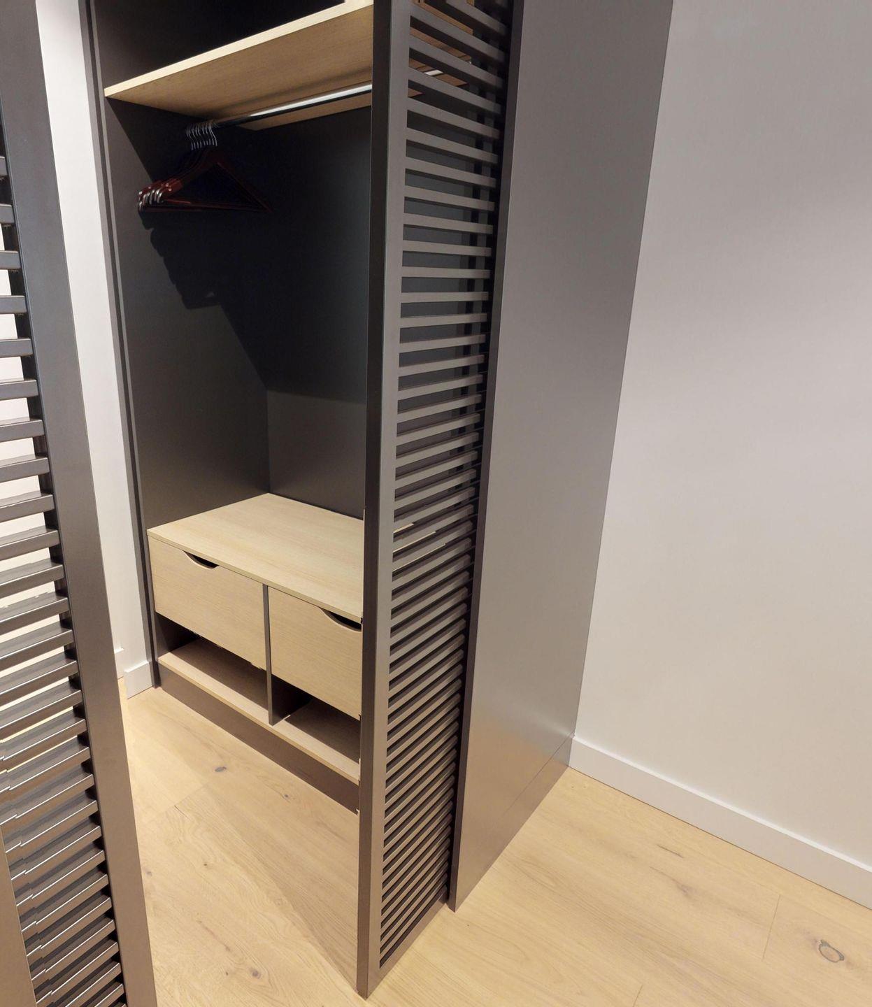 Sie können sich auf einen gemütlichen Wohn-Essbereich freuen. Das Sofa bietet eine Schlafmöglichkeit für zwei Personen. Angrenzend liegt die offene, moderne Küchenzeile mit kompletter Ausstattung. Das separate Schlafzimmer mit einem Boxspring-Doppelbett wird durch Lamellen-Schiebetüren abgetrennt. Das moderne Bad mit Dusche sowie die eigene Sauna (2,37m x 1,19m) runden das Apartment ab.