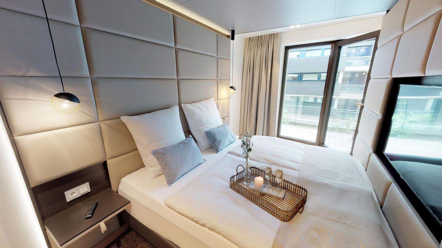 Highlights des Apartments sind die eigene Sauna (2,37m × 1,19m) sowie der möblierte Balkon mit Sonnenliegen, der entspannte Stunden an der frischen Luft ermöglicht! Zur Wohnung gehört ein Tiefgaragenstellplatz.