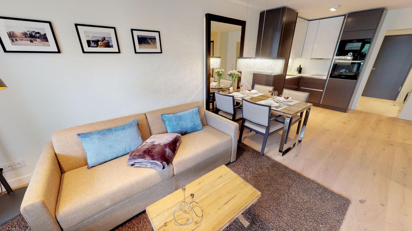 Nur wenige Gehminuten vom Strand entfernt befindet sich das Luxusapartment 1.04 im 1. Obergeschoss des "White Pearl" und bietet Platz für 2 Personen auf 62 m² - auch Ihr Hund ist willkommen!