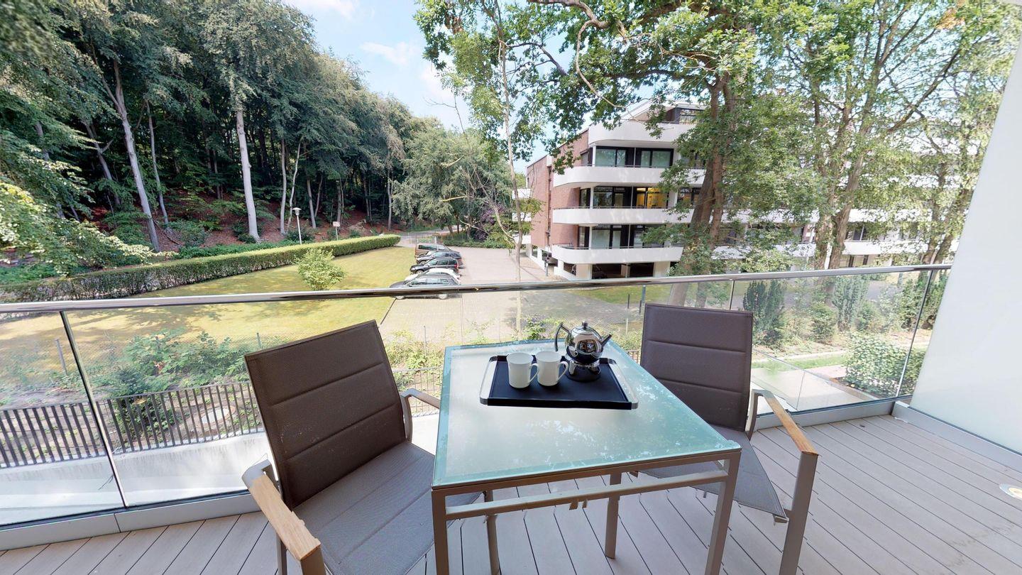 Besondere Highlights des Apartments sind die eigene gläserne Sauna (2,37m × 1,19m) sowie der große, möblierte Balkon, der zu entspannten Stunden an der frischen Luft einlädt! Zur Wohnung gehört außerdem ein Außenstellplatz. Diese Wohnung ist barrierefrei gem. LBO.
