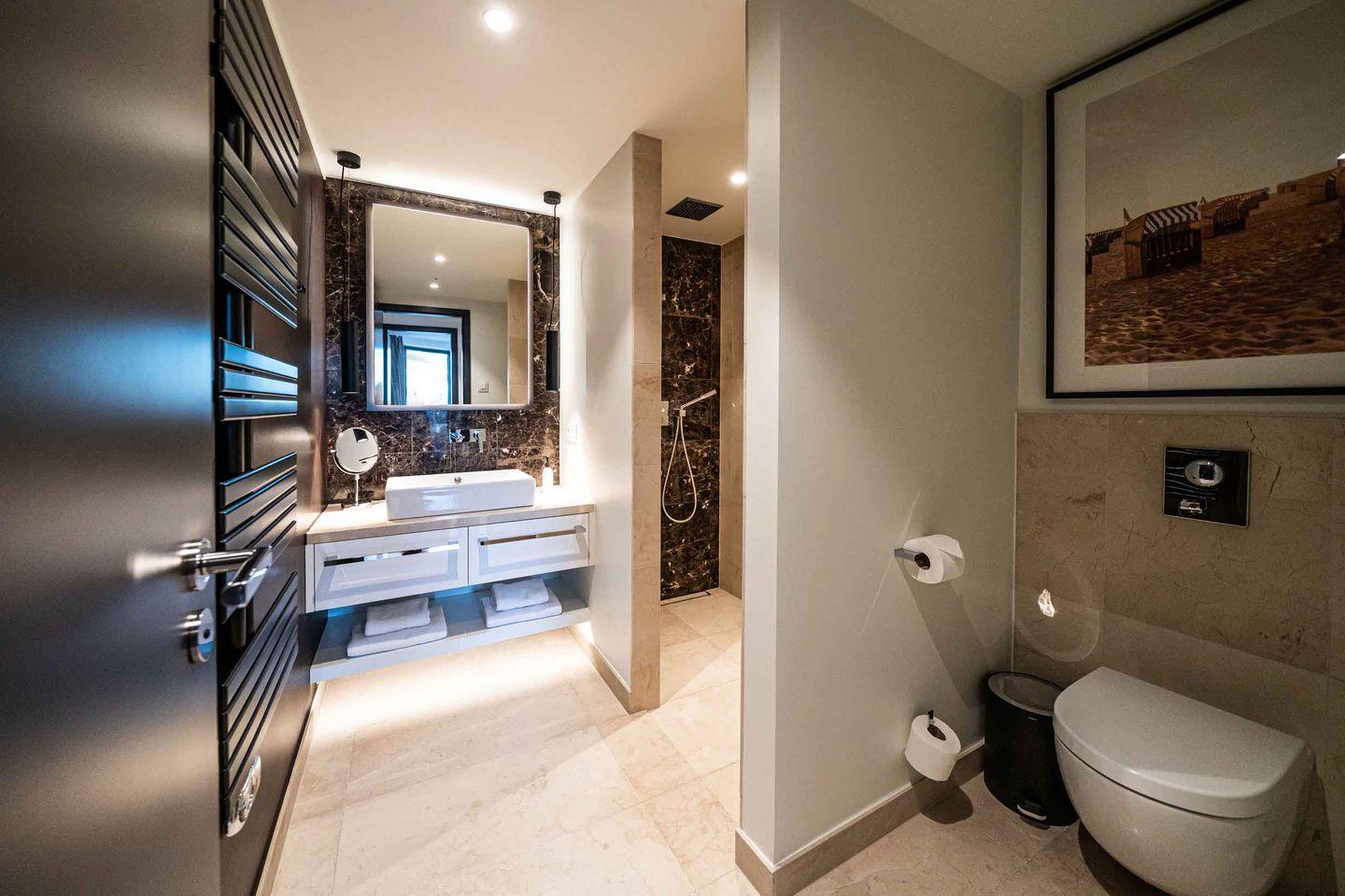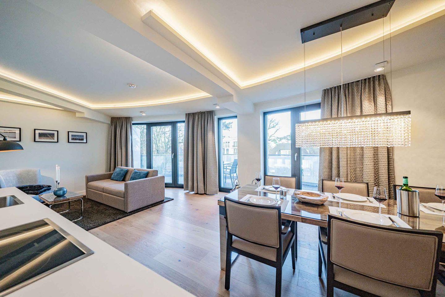 Nur wenige Gehminuten von der Ostsee entfernt befindet sich die Luxussuite 2.01 im 2. Obergeschoss des "White Pearl" und bietet Platz für 4 Personen auf 105 m².