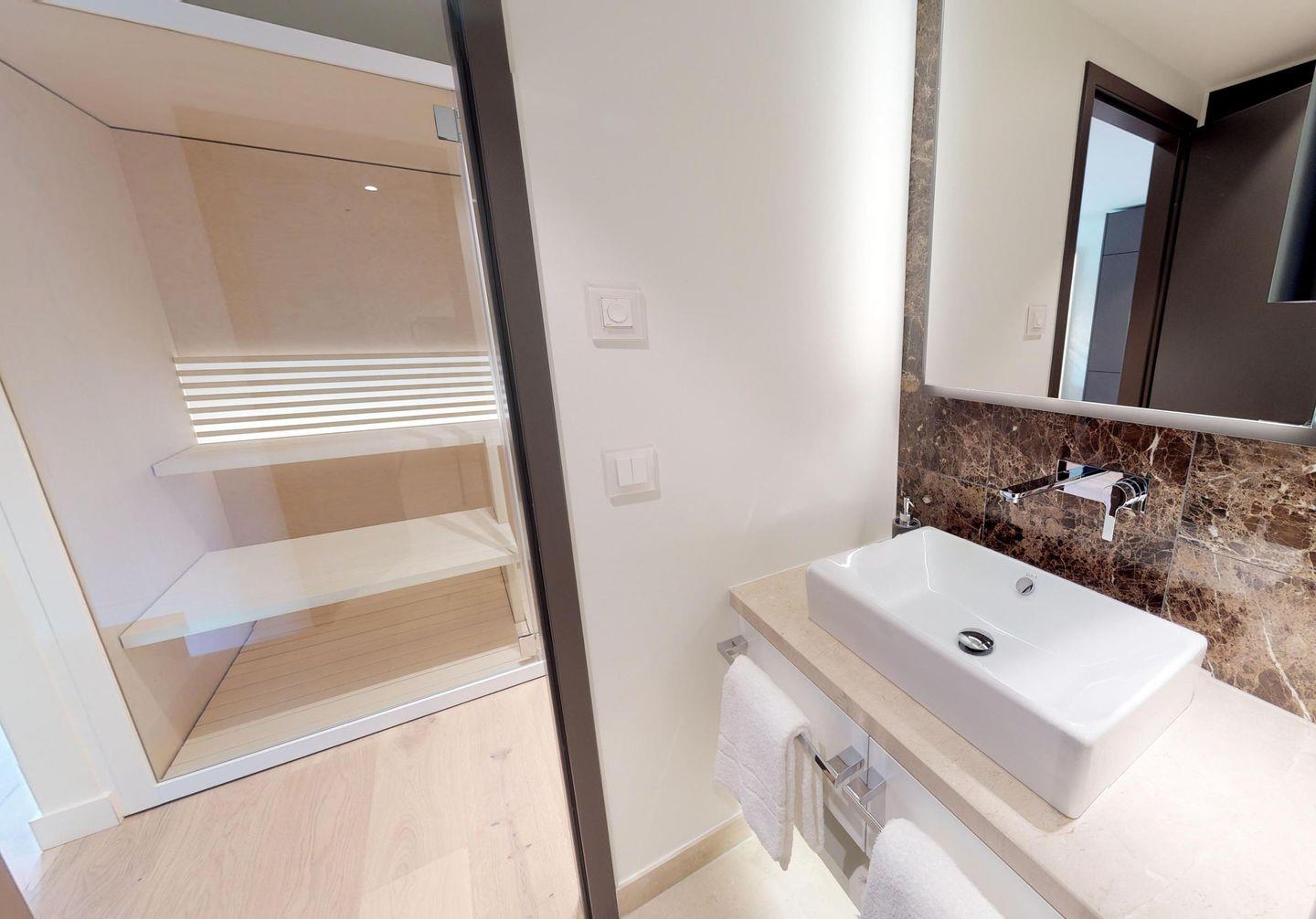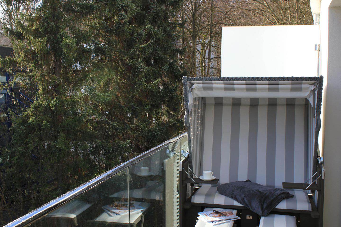 Highlights des Apartments sind die eigene Sauna (2,37m x 1,19m) sowie der möblierte Balkon Richtung Ostseite mit einem Strandkorb , der entspannte Stunden an der frischen Meeresluft ermöglicht! Zur Wohnung gehört ein Tiefgaragenstellplatz.