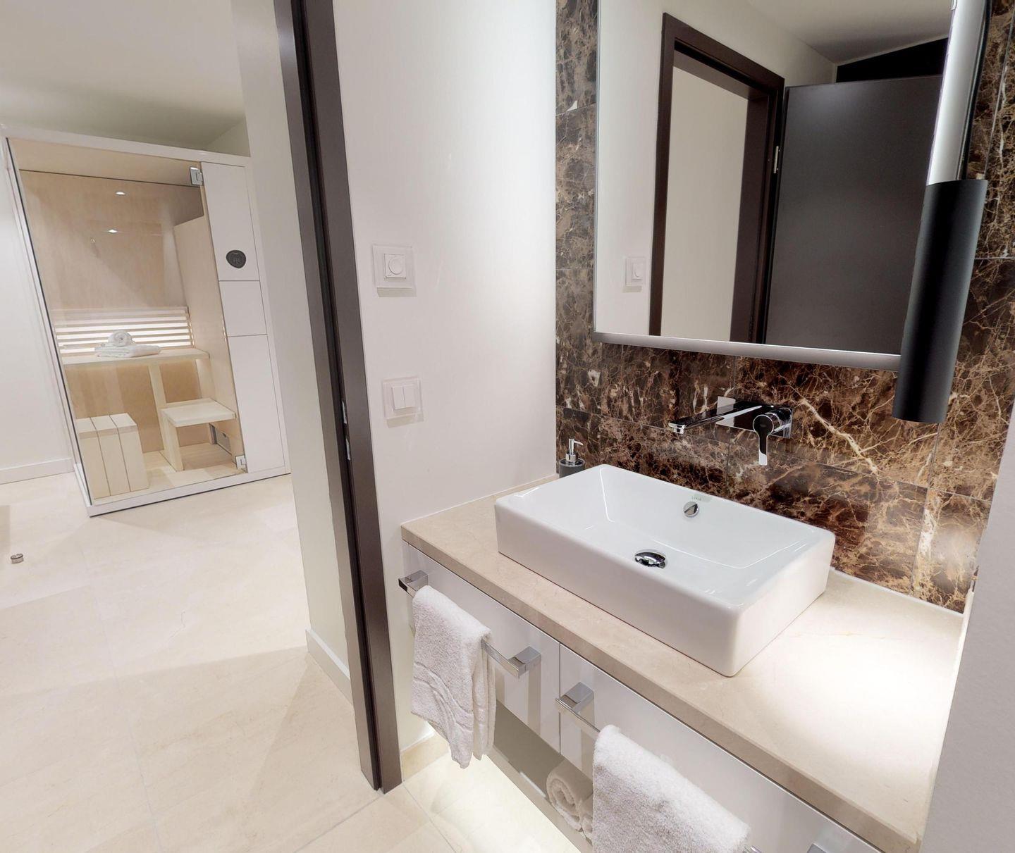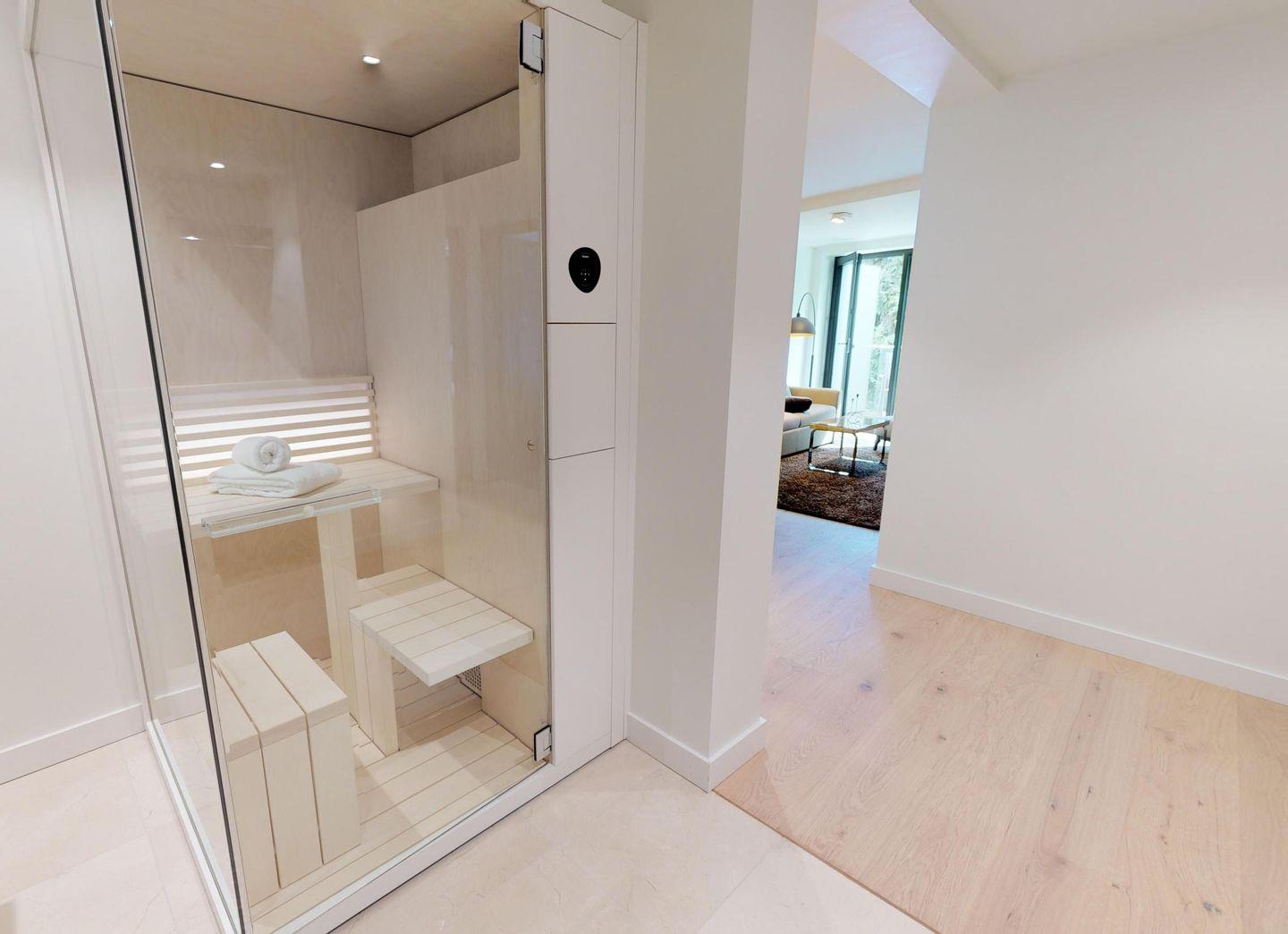 Highlights der Suite sind die eigene kleine Sauna (1,17m × 1,17m) sowie der möblierte Balkon Richtung Ostseite, der zu entspannten Stunden an der frischen Luft einlädt! Zur Wohnung gehört ein Tiefgaragenstellplatz.