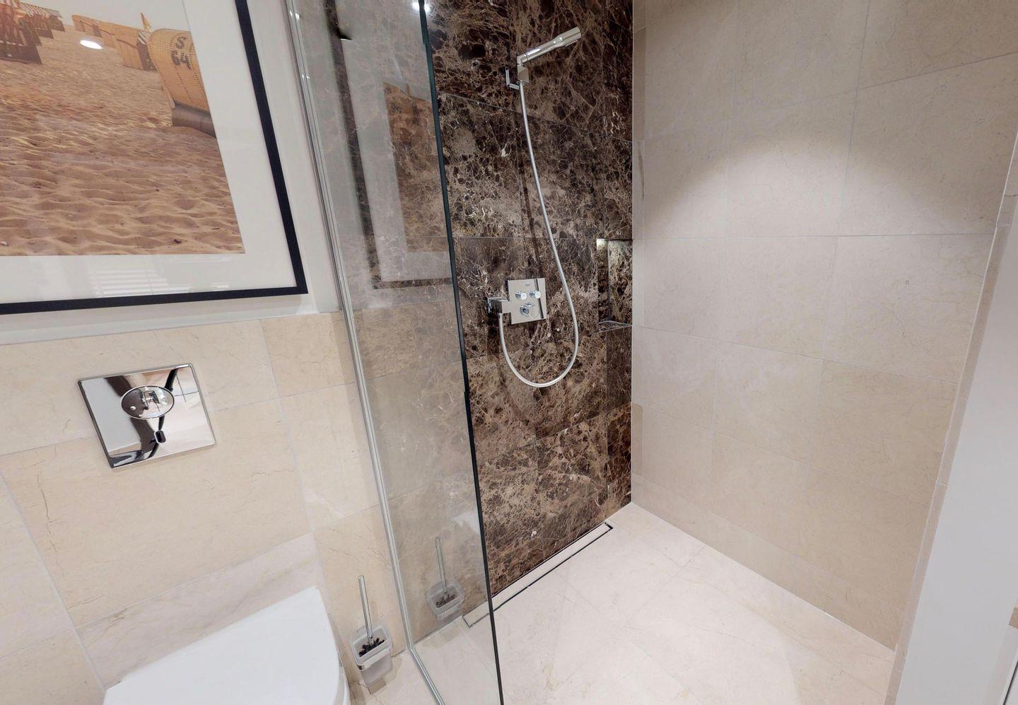 Highlights des Apartments sind die eigene Sauna (2,37m x 1,19m) sowie der möblierte Balkon, der zu entspannten Stunden an der frischen Meeresluft einlädt! Zur Wohnung gehört ein Außenstellplatz . Diese Wohnung ist barrierefrei gem. LBO.