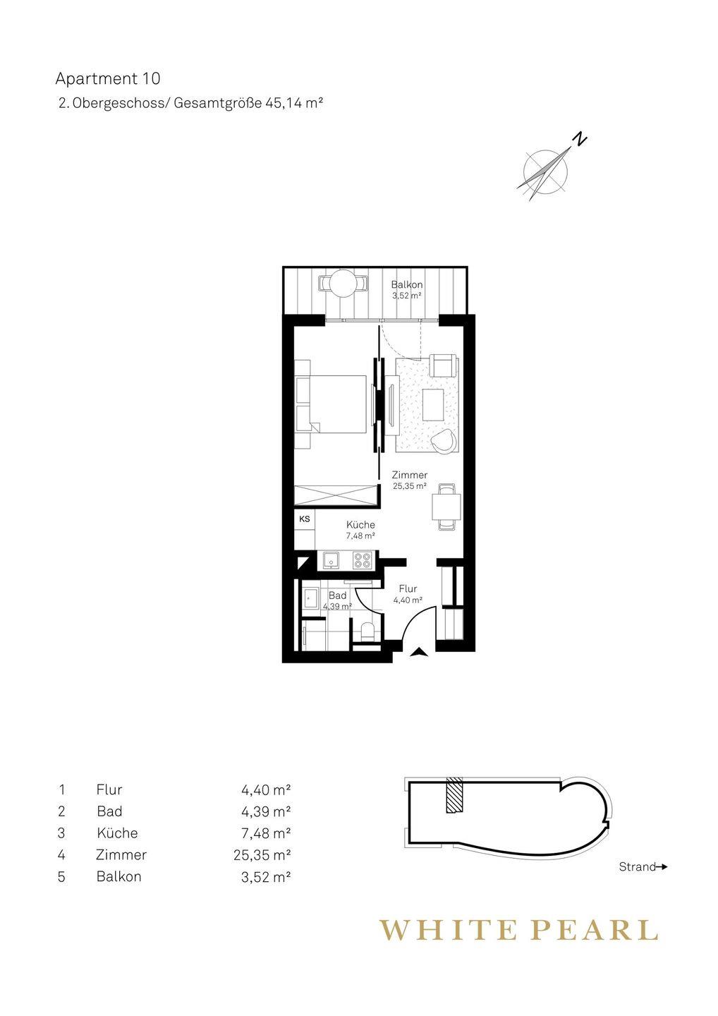 Nur wenige Gehminuten vom Strand entfernt befindet sich das Luxusapartment 2.10 im 2. Obergeschoss des "White Pearl", das auf 45 m² Platz für 2 Personen bietet - auch Ihr Hund ist herzlich willkommen.