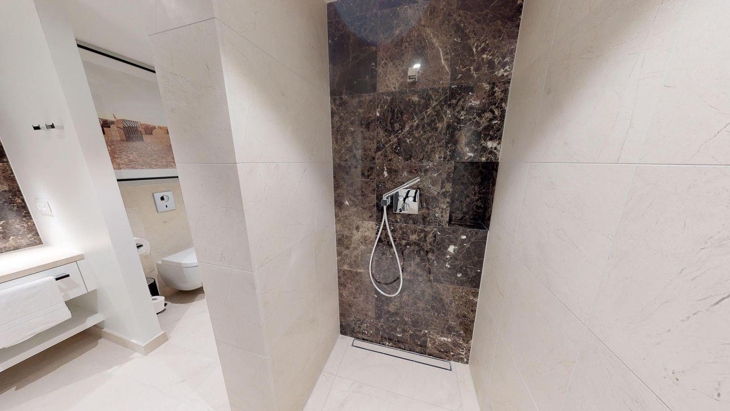 Highlights des Apartments sind die eigene Sauna (2,37m x 1,19m) sowie der möblierte Balkon Richtung Westseite, der zu entspannten Stunden an der frischen Meeresluft einlädt! Zur Wohnung gehört ein Außenstellplatz.