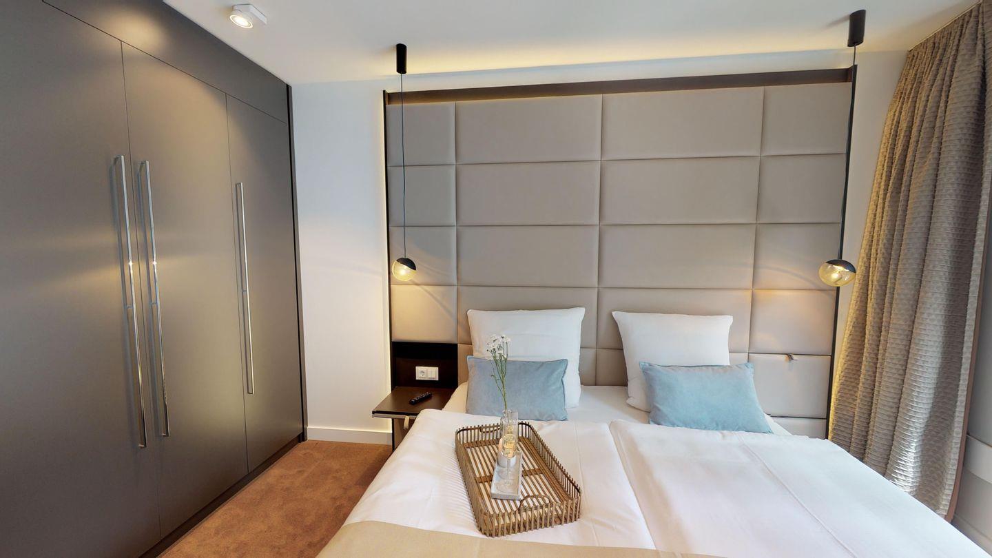 Die wunderbare Luxussuite 3.04 im 3. Obergeschoss bietet mit ihren 80 m² Platz für 5 Personen und liegt nur wenige Meter vom Strand entfernt. Die Suite verfügt über zwei separate Schlafzimmer sowie ein Schlafsofa im Wohnbereich für eine Person.