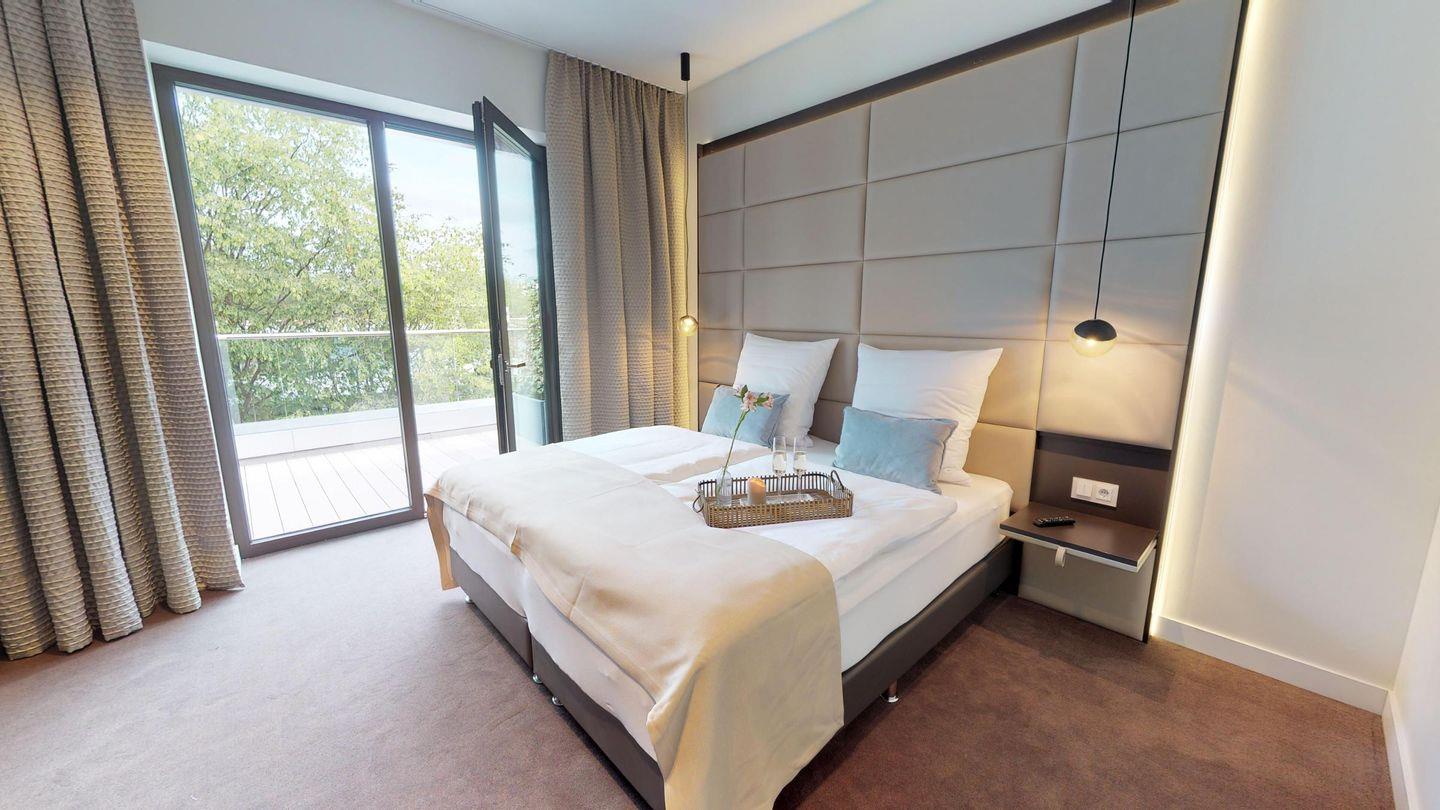 Nur wenige Gehminuten von der Ostsee entfernt befindet sich das Luxus-Penthouse 4.02 im vierten Obergeschoss des "White Pearl" und bietet Platz für 5 Personen auf 107 m².